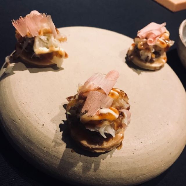 鳕鱼子,帝王蟹,鱿鱼,炸鸡,鹿儿岛黑毛猪,椰枣咖啡风味甜品,雪蟹脆米饭,三文鱼籽茶碗蒸配海鳌虾,精选食材,杏仁鹅肝汤,木薰鸭胸,慢煮九州黑毛猪,海胆面包,鲍鱼鸡炖饭,和牛,餐前小食,芒果配香草冰淇淋,鸡肉泡饭,鱼类刺身,餐后配茶,Wagyu,Shiitake