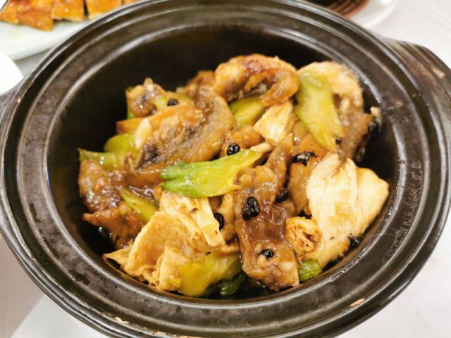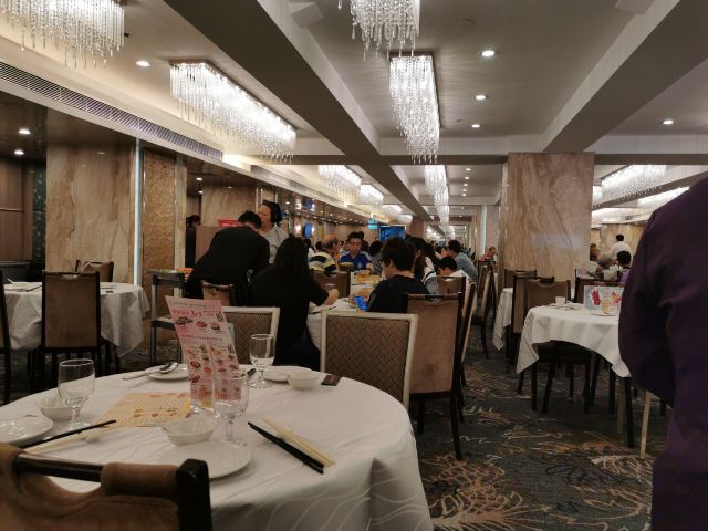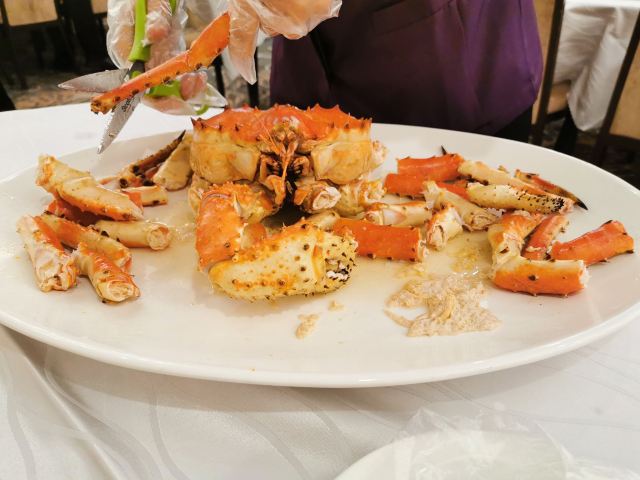 这里现在做特价加拿大长脚蟹,988元港币一只,有5斤左右,算抵食了。其它的莱做得一般般,苦瓜斑腩没有味道,烧鹅还可以的。茶位都几贵,15港元1位。