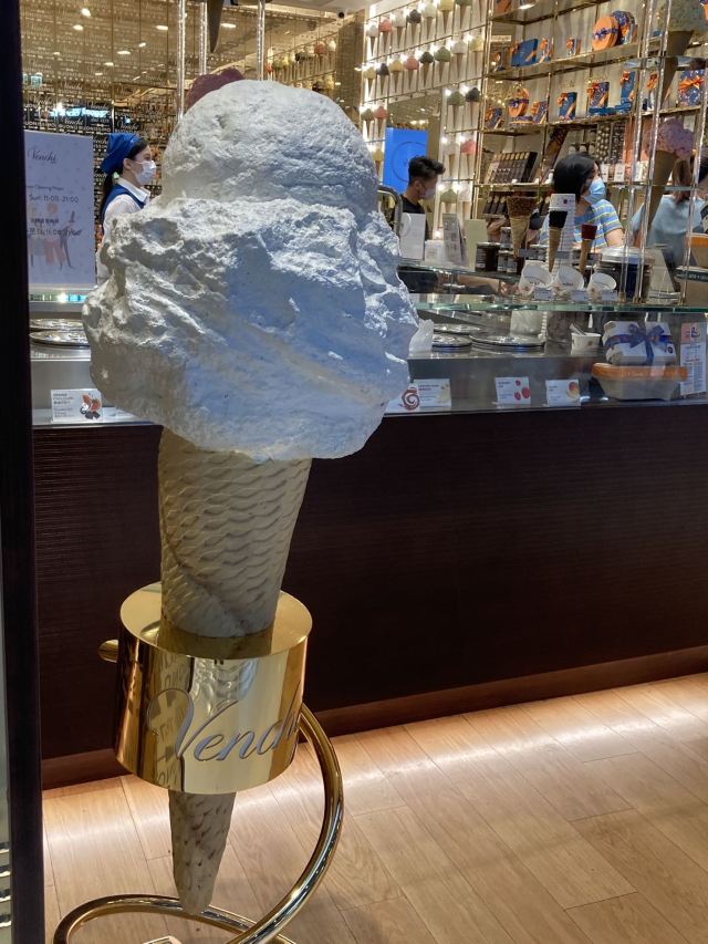 形点1期的亮点之一就是地下花园。Venchi位于笔直通向地下花园的路上。除了冰激凌,正推出Garden Collection。缤纷的色彩和口味,仿佛是对地下花园的解释和补充。