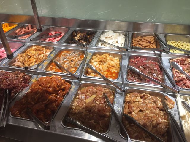 中秋节假期间价格调高了不少,还要提早订位。他们以自助形式到展示枱取食物,肉类的选择不少,大部分都是腌过的,只有三款没加工的鲜肉,也是最受欢迎的三种,一下子就被取完了,但补充十分缓慢。