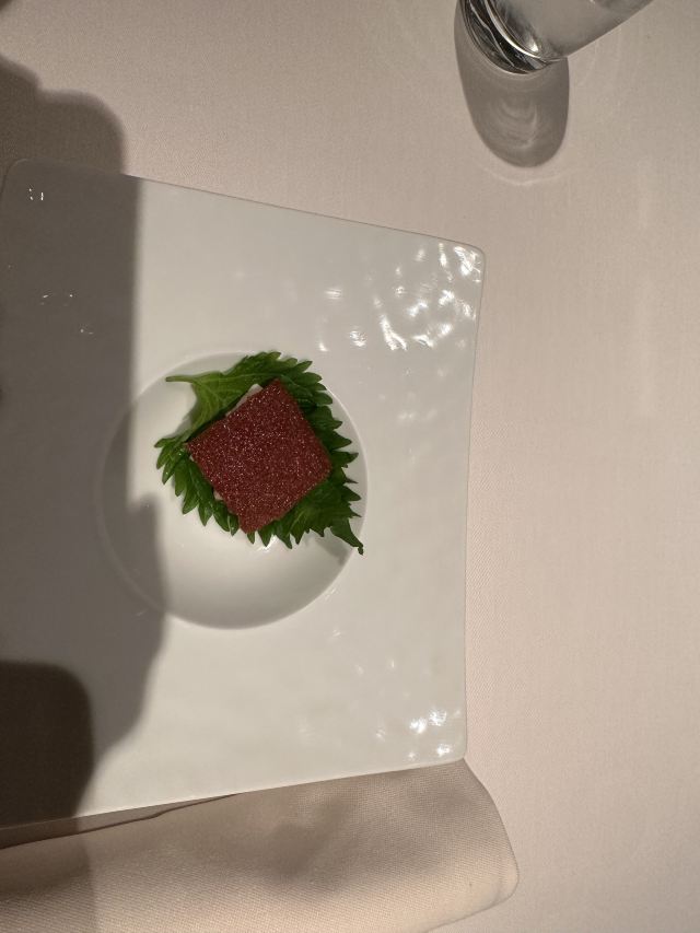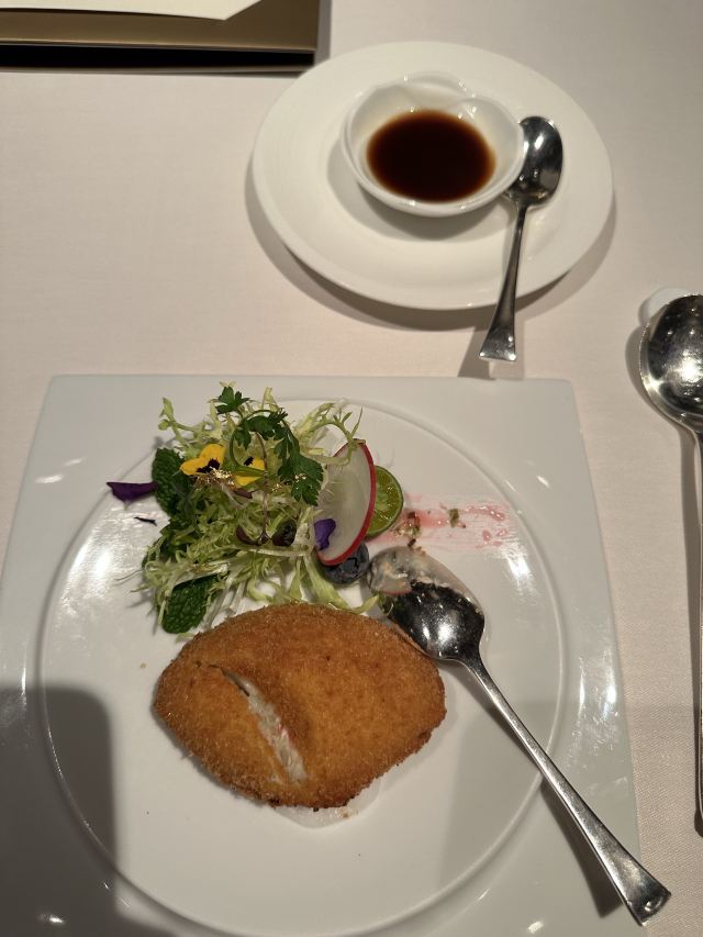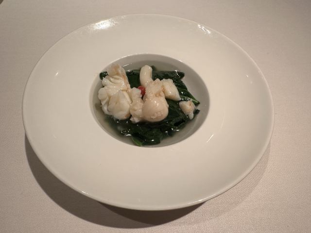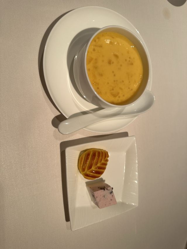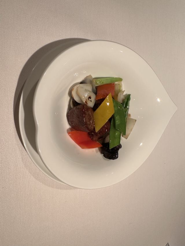 迪斯卡沃第一个米其林三星中餐 很稳很好吃但没有“哇” —叉烧肠粉皮确实厉害 —鲍鱼鸡粒酥 小心烫 酥皮香但偏甜 —松子菠萝叉烧包 —主厨三拼(叉烧 龙虾春卷 炸蚝)两个炸物不知道怎么搭的会被油到 —蟹盒一勺子下去全是蟹肉 —用意面假冒的炒饭是真的好吃!香而不油口感绝妙 最喜欢。