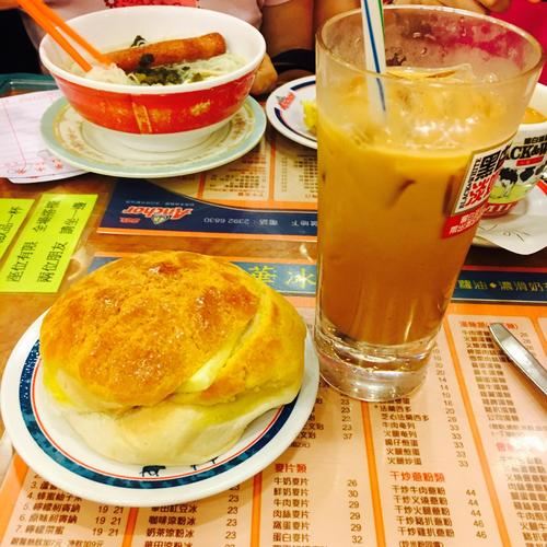 老字号的茶餐厅,菠萝油堪称香港第一,现烤个大,外皮十分酥脆,黄油融化与其合二为一,一口下去香气四溢,果然不负第一的称号。价钱便宜,来的本地人超多。经常有特价的午餐和晚餐供应,感觉很好。