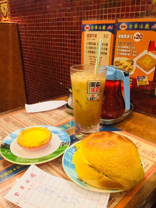 点了一个菠萝油10港币,一个冻奶茶19港币,一个西多士20港币,这个价钱在香港算是很实惠了。为了招这个地方 跟着导航跑, 附近很多X华冰室,华X冰室,误导了我们几次。