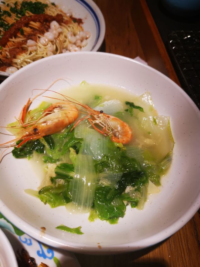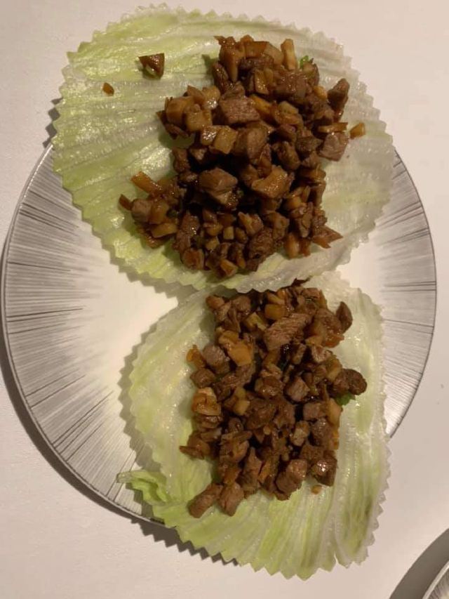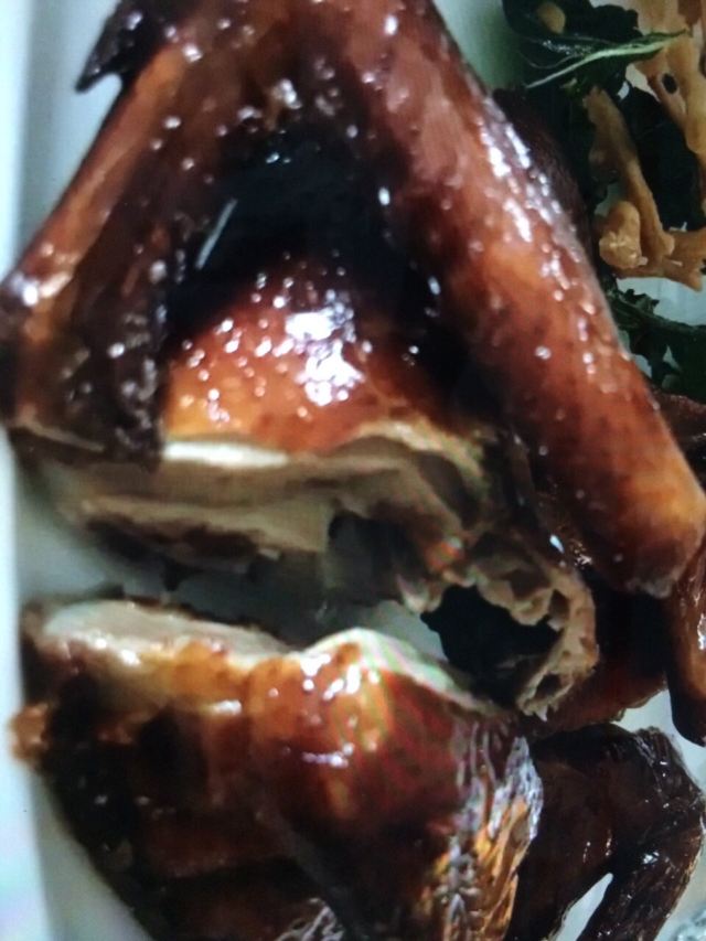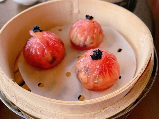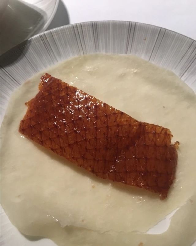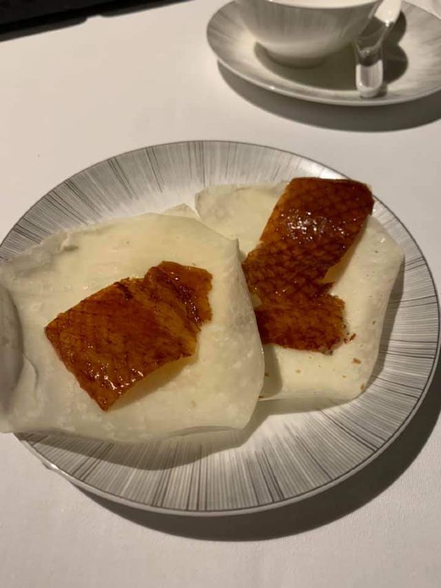Lai Ching Heen推荐香烤片皮鸭,可以三吃,第一池当然片皮、配上三种酱料,海鲜酱、韩式辣酱同桂花梅子酱、加六种配菜,京葱、青瓜、青木瓜、红椒丝、柚子、凤梨、第二吃鸭崧生菜包、最后是香脆鸭崧卷。三款味道都好。