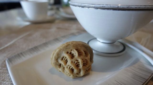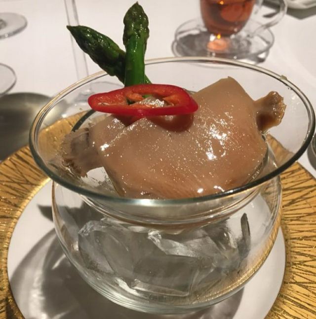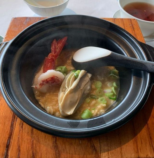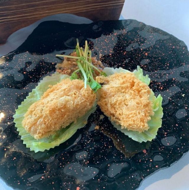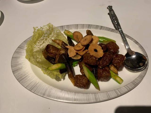 陌染MM这家中餐厅位于尖东的洲际酒店地下层,是今年的米其林二星餐厅,有那样的荣誉,就有那样的服务和出品,这是必须要赞一下。餐厅是在酒店的负一层,从餐厅的侧门出去,就是星光大道,外面也就是维多利亚港,白天的景色一班,晚上的话,由于灯光都开了,维港的夜景真是漂亮。餐厅的餐具摆设的材料主要采用的是玉石,从放在餐桌上面的盘子、筷子架、牙签盒、餐巾扣,还是餐厅里面的屏风,装饰品,都是选用玉石作为材料,更显出它高贵的一面。 出品十分棒,例如:头一道菜是鲍鱼芋头酥,是一个芋头蓉做的酥角,芋头很香,不会很甜,炸得火候控制得不错,外脆内软,最上面用了一片鲍鱼当点缀,不是一整只,只有切了厚厚的一片而已,整体卖相很好。又好像石锅鳕鱼,一位一位上的,一大块鳕鱼,事先炸过再放烧红了的石锅里面,鳕鱼虽然炸过,但是它的内层还保持着鲜嫩,滑滑的鱼肉很好吃,外层嘛,虽然被炸过,但是居然没有吃出炸过的那一种苦涩味,只有脆脆的皮。核桃露,即使是一道简单的糖水,也是做得那么的出神入化,鲜磨的核桃露很香的核桃味,原汁原味,满满的一大碗,让人惊喜的还是那个放在旁边做装饰的,手工捏制的象形核桃,很精致,很细腻,是厨师手工一点一点地捏出来,所以吃起来感觉特别好吃。