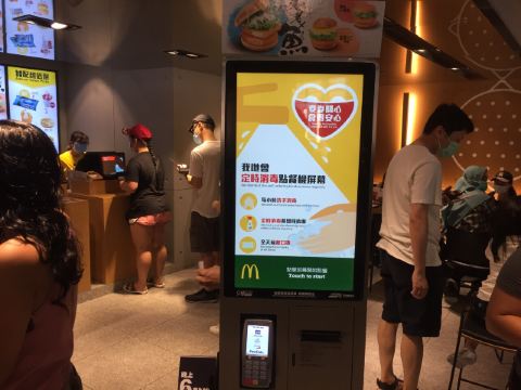 跟其他分店一样,美孚万事达广场的麦当都装了机器自己点餐,进去的在机器的屏幕自己操作就可以了。可惜进去后全部机器突然故障,很多人都点不到餐,店內挤满了人。