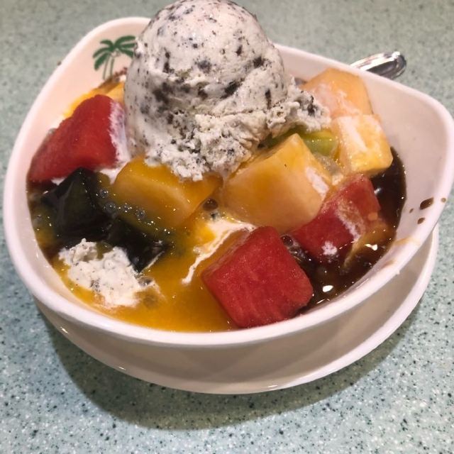 品种很多的糖水店,菜单有好几页,选择性很多,生意超好。这里的甜品都值得尝试,幻彩明珠是这里的招牌,堪称水果交响曲,以凉粉做底,搭配了西瓜、哈密瓜、芒果、奇异果等各种水果,好吃又解暑。另外还有杨枝甘露、榴莲班戟、六宝汤圆等也是热销产品。
