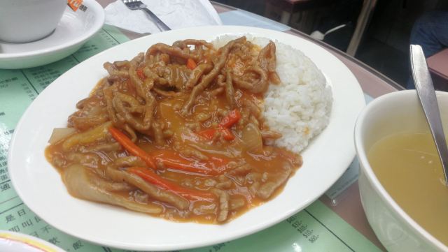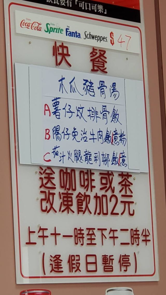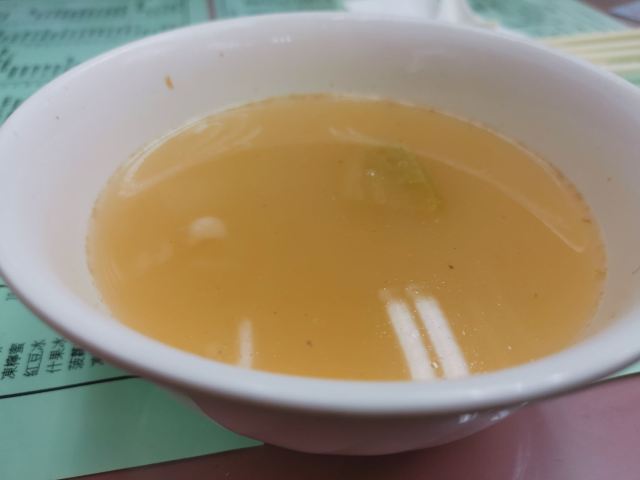 在青衣码头巴士总站旁边的茶餐厅,附近没有太多选择,菜的食品一般,翠肉瓜猪颈肉猪颈肉不错口感及格,翠肉瓜偏硬了一点,米饭普通,俄罗斯牛柳丝饭一般,实在看不出这道菜跟俄罗斯有啥关系,牛柳丝没有什么味道,鸳鸯走可以平衡稳定,例汤如图,没有半点料。