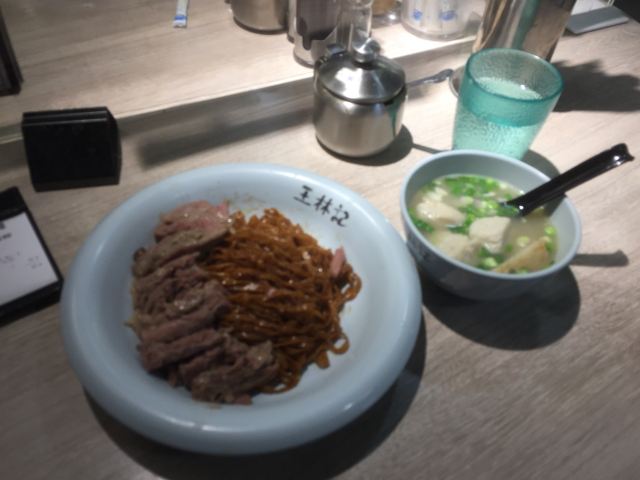 王林记的招牌豉油捞面太靓样了!香葱鱼蛋亦是完美配搭,微甜的豉油与面条非常配合,谁没抢谁镜的份儿,每条面条都沾了豉油,不咸不淡味道刚刚好,面亦爽弹有口感,切腩入味不会柴。 鱼蛋质感偏一点点实。但鱼味浓郁反而没太注意葱的存在,还有白胖的学斗菜,浸在鱼汤里,非常美味,店家服务殷勤,会再来的店。