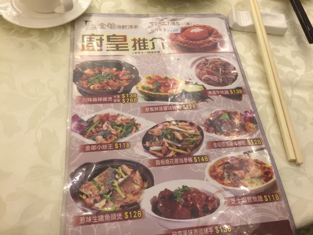 旺角弥敦道金御海鲜酒家非常不错。 推荐即烧有米脆皮皇子猪、清蒸沙巴龙趸、西芹炒鲜鱿、蒜蓉炒西兰花、红烧北菰豆腐煲,还有甜品红豆沙。 充满欢乐的一餐……