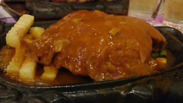 猪扒饭,黑椒西冷牛排,羅宋湯,黑椒牛柳,德國鹹豬手,凍檸茶,忌廉湯,牛油多士,凍檸檬水,雲喱拿雪糕,凍檸檬茶