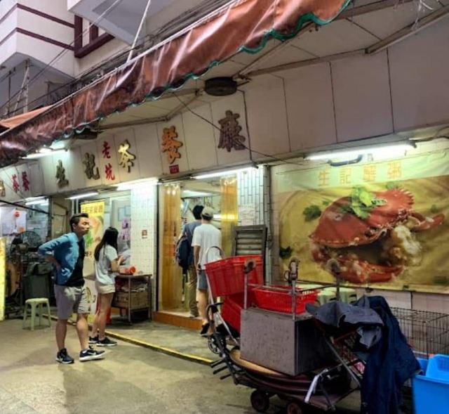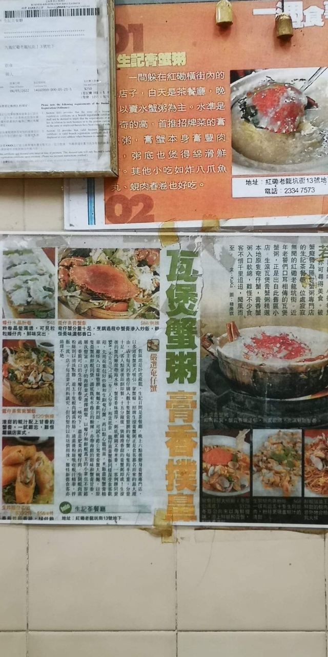 生记茶餐厅就在红磡老龙坑街13号。到这家老店必吃瓦锅蟹粥, 豉油王炒面,椒盐鲜鱿,椒盐白饭鱼,虽然品种很少,但味道非常不错。