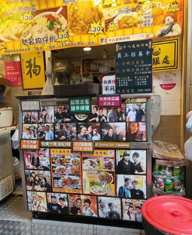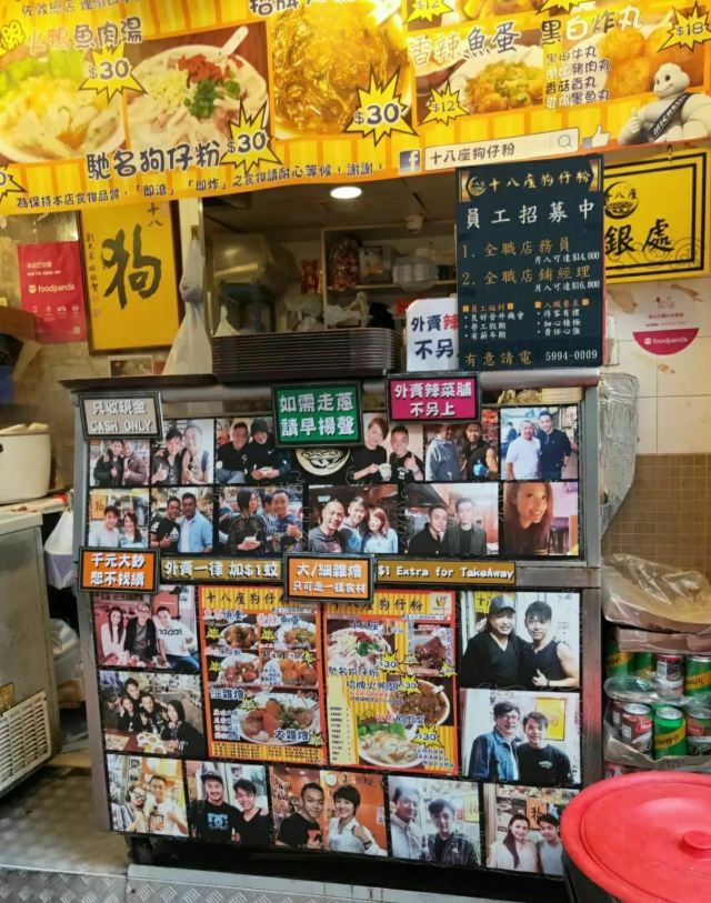 Tower 18 Doggie's Noodle香港十八座狗仔粉:香港中环是港岛的中心了,寸土寸金,很多小店确是开了很多年,品质没得说。这次这家十八座狗仔粉就是,中午都可能要等位了。墙上贴满了各种明星的照片,很有港味儿。自己扫码点餐,服务就不用想了,各种港式小吃,粉面的味道是不错的。