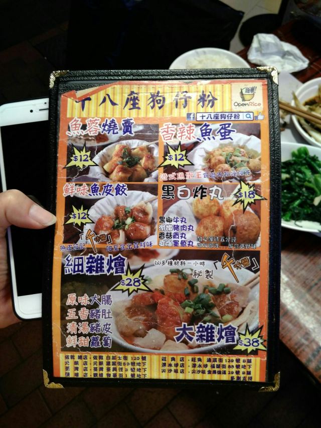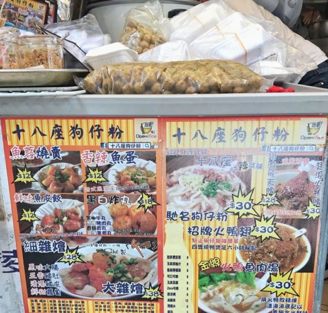 狗仔粉,火鸭翅,香辣鱼蛋,黑白炸丸子,鱼蓉烧麦,鱼皮饺子,大雜燴,咖喱鱼蛋,十八座粉捞翅,鸭撩翅,鱼蛋