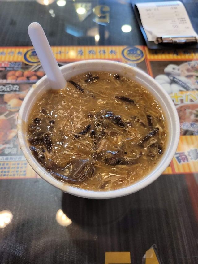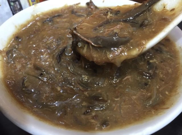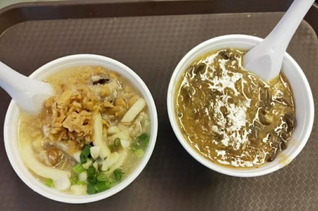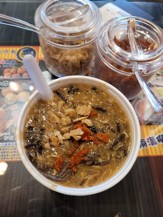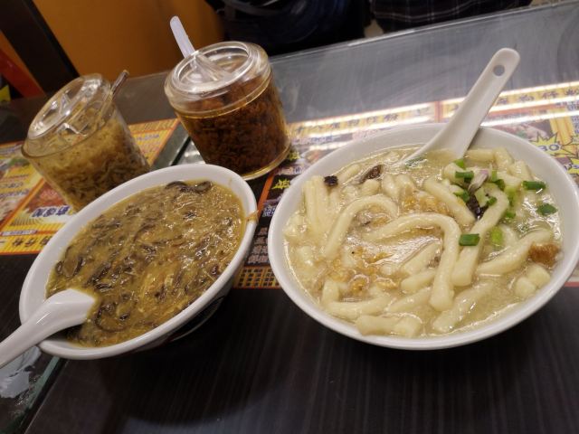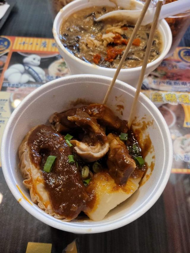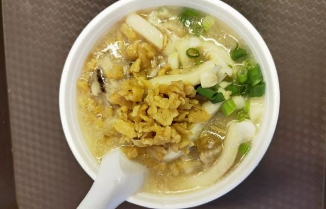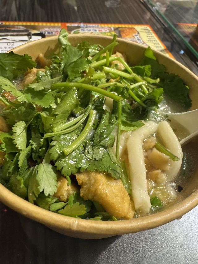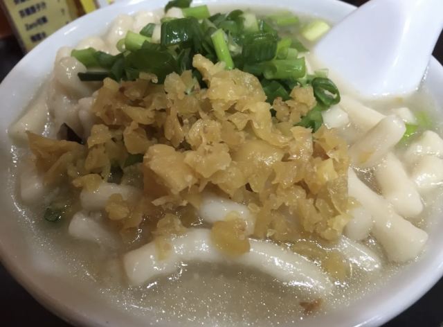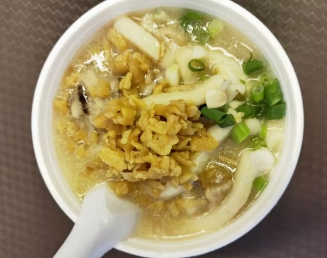 陌染MM十八座狗仔粉是2016年米其林推荐的街头小吃店,它以狗仔粉出名,总店在佐敦附近,在全香港已经有多家分店了。 狗仔粉其实就是广东的濑粉,不过传统的濑粉比较白,而这里的确是有点黄,整碗狗仔粉有点稠,像羹类,在这里吃东西没有筷子的,只提供一个汤匙,听说这里的粉都是店主自己一手一脚用粘米粉做出来的,加入汤底一起煨一个多小时让粉入味了才可以吃,店员很热情地提醒我们可以加入一些自制的菜脯,会更好吃。菜脯有两种,辣和不辣的,自己可以根据情况自行添加。菜脯都是用蒜头去爆过,所以很香,辣味的很厉害,辣得很爽,原来是用了三种辣椒粉去炒,怪不得那么呛。狗仔粉里面用了猪肉渣,加入菜脯一起吃,不会很油腻,但是非常香。 这里另外一个特色就是火鸭翅,堂吃的话,有大碗或者小碗,但是如果外卖的话,就只有大碗的,通常一碗狗仔粉可能不够,再加一碗火鸭翅就最棒了。店里面的宣传纸写着,火鸭翅每天一煲就用上四只烧鸭,还煲上六个小时才制成,真是花了不少心思。要了一碗小的,但是分量也有不少,看到配料很足,翅身也煲到非常浓稠的状态,里面还加了不少的木耳丝,火鸭丝也是用手拆出来的细丝,大大 口放进嘴里,味道香浓,鲜美。这大大碗、用料十足的火鸭翅小碗只卖20元港币,真材实料。