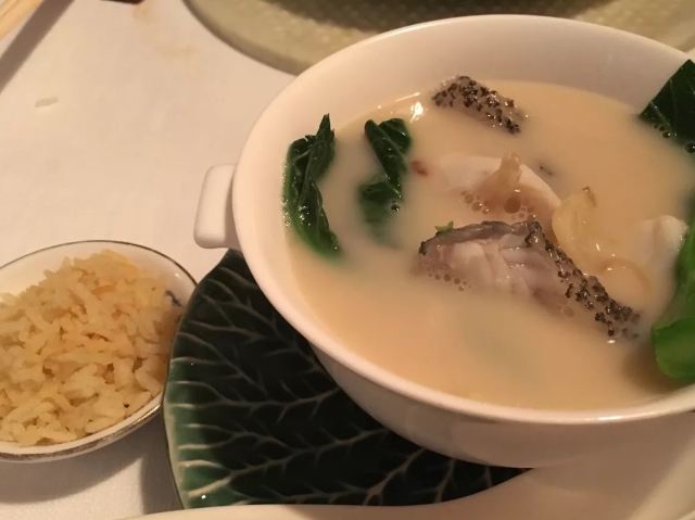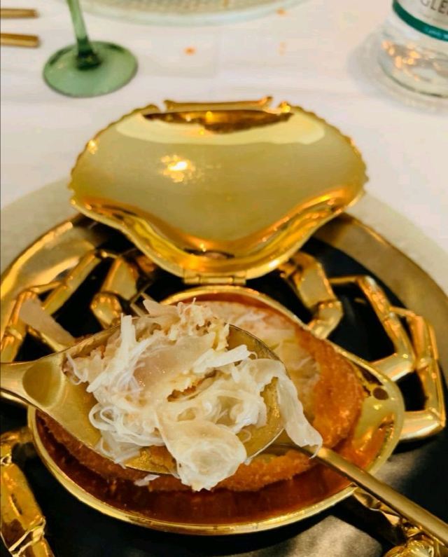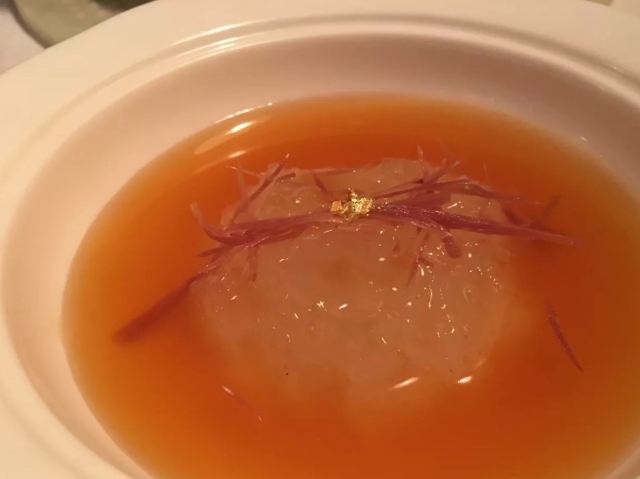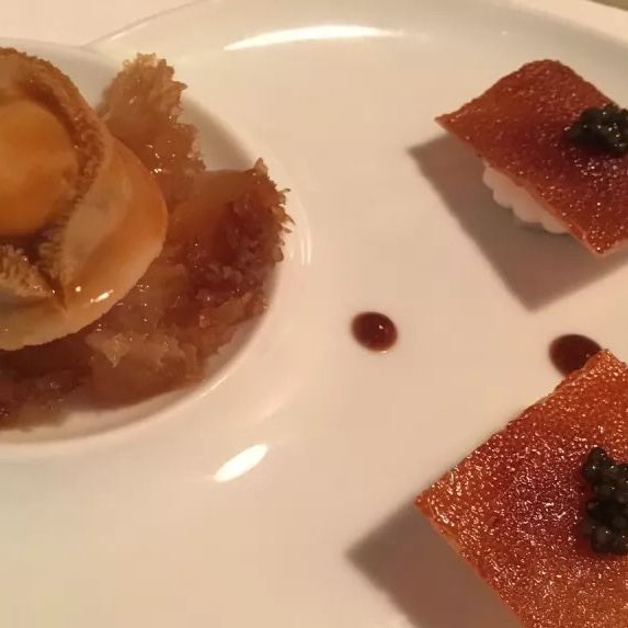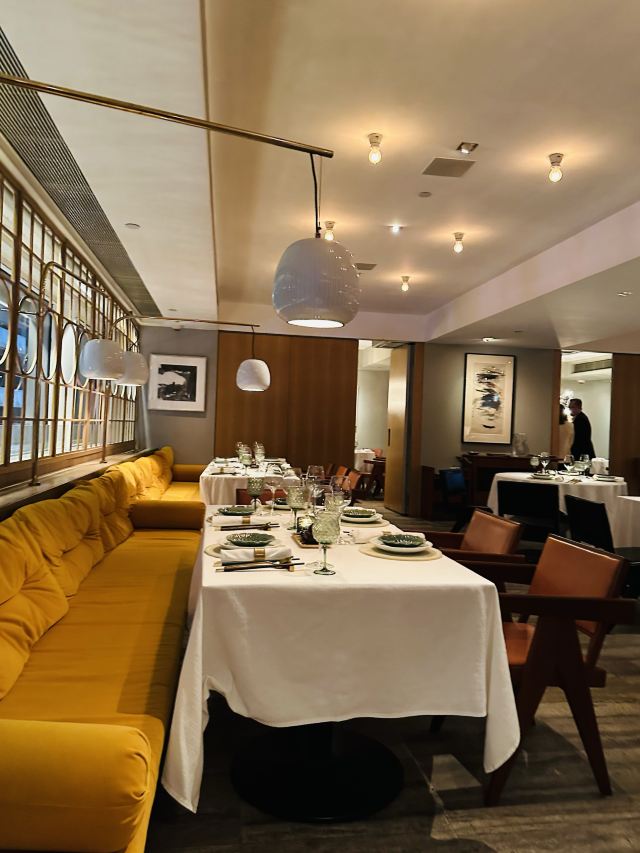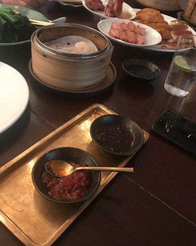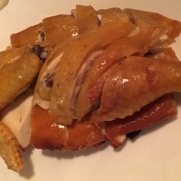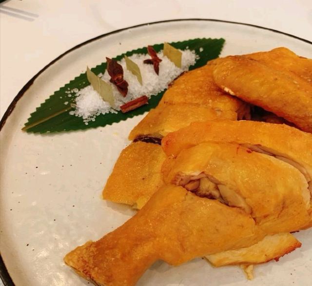 Duddell's提前有订位,10[%]的服务费,外面有很多毛爷爷语录和那个年代的宣传画,用餐区域是反差的现代风。富贵盐香鸡 250港币,目前人生中吃过的最好吃的鸡,皮脆鸡肉嫩香鲜,很好吃。看过这道菜的做法,把整只新鲜的鸡浸到香浓的鸡汤里,加入金华火腿日本干贝虾米,风干12小时。单吃了多了有点咸了,又点了碗米饭25港币。 芙蓉珊瑚脆蟹卷 420港币,蟹黄带子石斑鱼块蛋白,融合在一起奶香海鲜的鲜,滑溜的口感。蜜饯黑猪肉叉烧 120港币,点了半份酱汁浓郁,甜甜的。南非鲍鱼脆皮乳猪,芝士烩乳龙,金腿红烧官燕盏,京葱头抽煎A4和牛,珊瑚枇杷豆腐等等,味道挺好的。