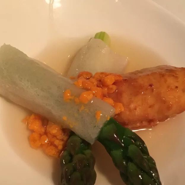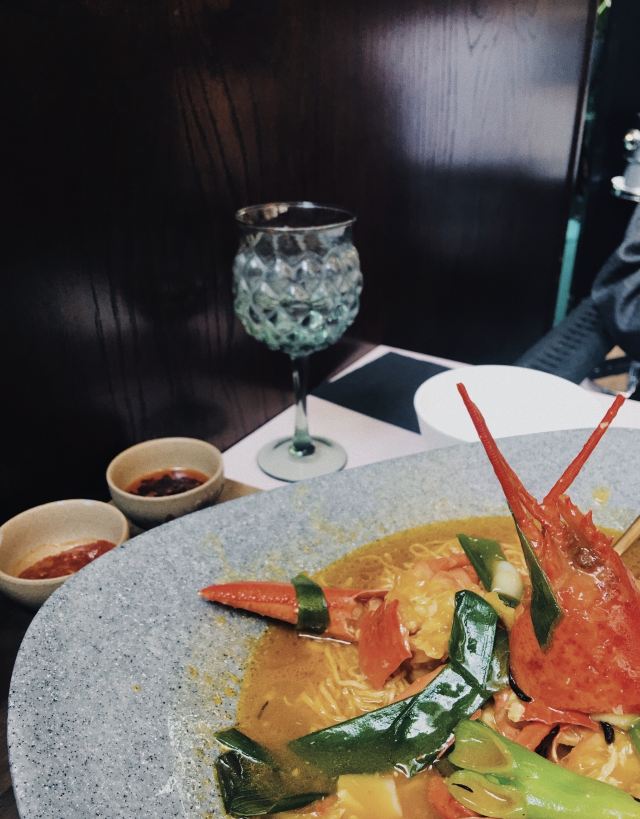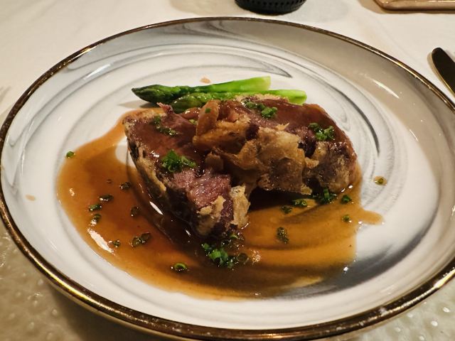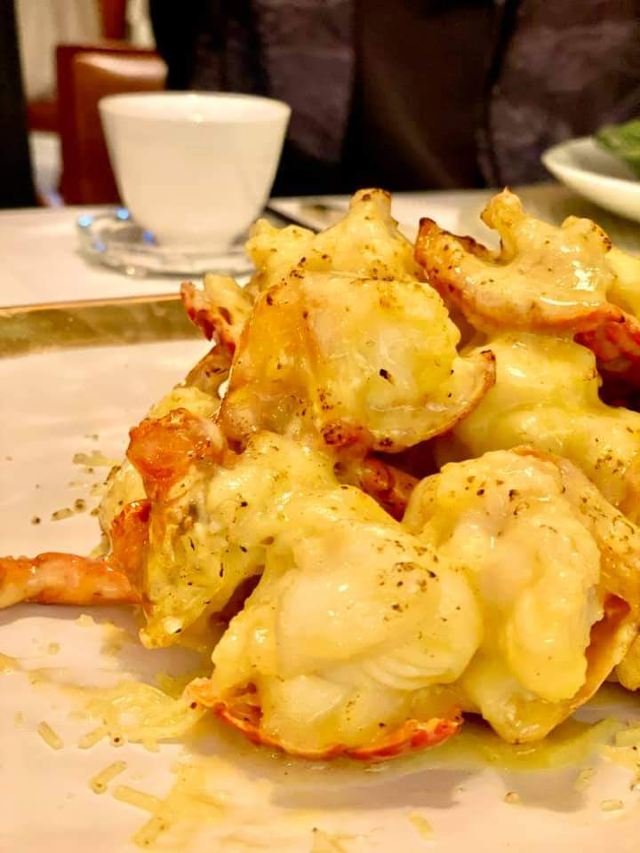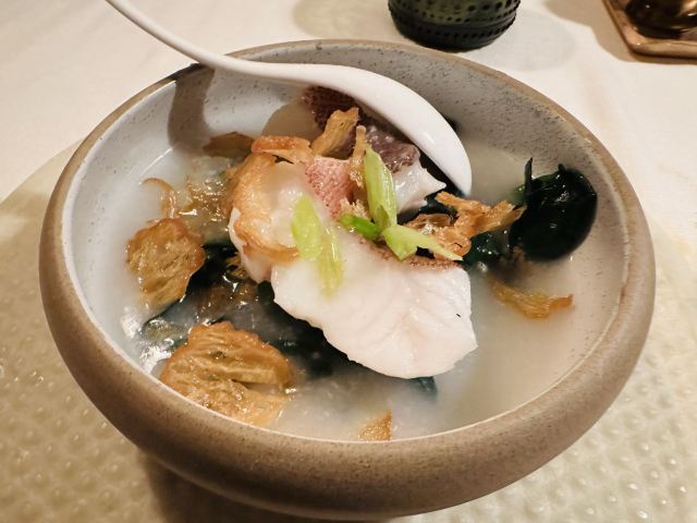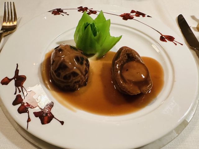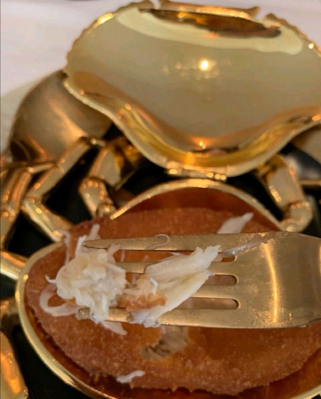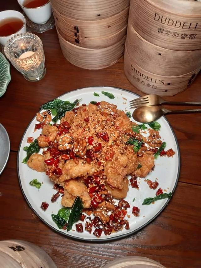 Duddell's提前有订位,10[%]的服务费,外面有很多毛爷爷语录和那个年代的宣传画,用餐区域是反差的现代风。富贵盐香鸡 250港币,目前人生中吃过的最好吃的鸡,皮脆鸡肉嫩香鲜,很好吃。看过这道菜的做法,把整只新鲜的鸡浸到香浓的鸡汤里,加入金华火腿日本干贝虾米,风干12小时。单吃了多了有点咸了,又点了碗米饭25港币。 芙蓉珊瑚脆蟹卷 420港币,蟹黄带子石斑鱼块蛋白,融合在一起奶香海鲜的鲜,滑溜的口感。蜜饯黑猪肉叉烧 120港币,点了半份酱汁浓郁,甜甜的。南非鲍鱼脆皮乳猪,芝士烩乳龙,金腿红烧官燕盏,京葱头抽煎A4和牛,珊瑚枇杷豆腐等等,味道挺好的。