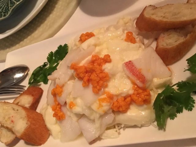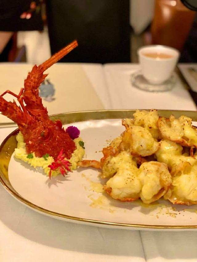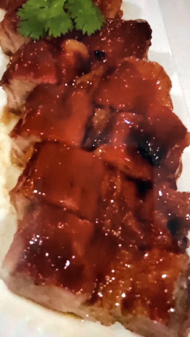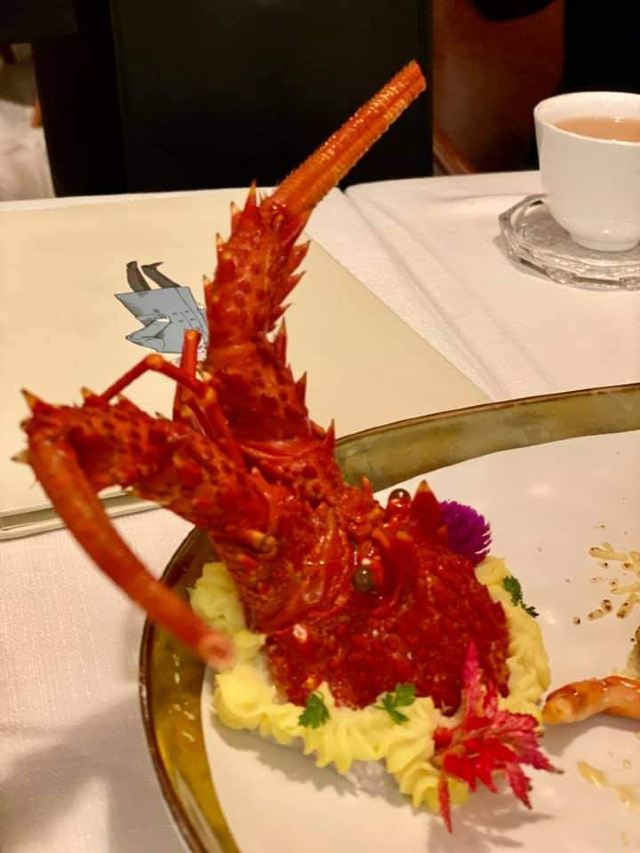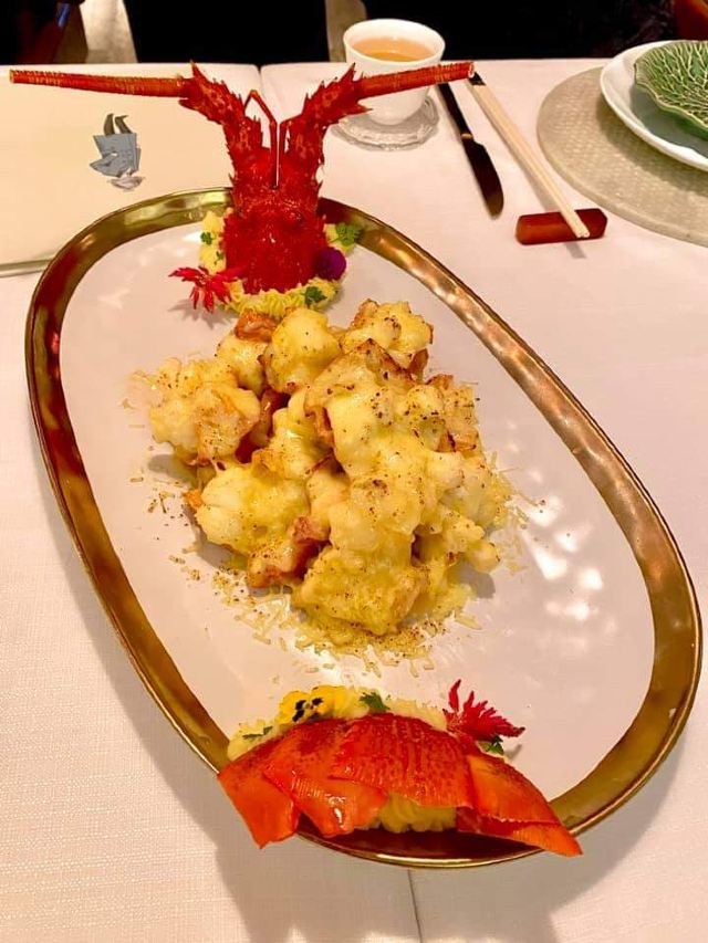 sAviOr_07提前有订位,10[%]的服务费,外面有很多毛爷爷语录和那个年代的宣传画,用餐区域是反差的现代风。富贵盐香鸡 250港币,目前人生中吃过的最好吃的鸡,皮脆鸡肉嫩香鲜,很好吃。看过这道菜的做法,把整只新鲜的鸡浸到香浓的鸡汤里,加入金华火腿日本干贝虾米,风干12小时。单吃了多了有点咸了,又点了碗米饭25港币。 芙蓉珊瑚脆蟹卷 420港币,蟹黄带子石斑鱼块蛋白,融合在一起奶香海鲜的鲜,滑溜的口感。蜜饯黑猪肉叉烧 120港币,点了半份酱汁浓郁,甜甜的。南非鲍鱼脆皮乳猪,芝士烩乳龙,金腿红烧官燕盏,京葱头抽煎A4和牛,珊瑚枇杷豆腐等等,味道挺好的。