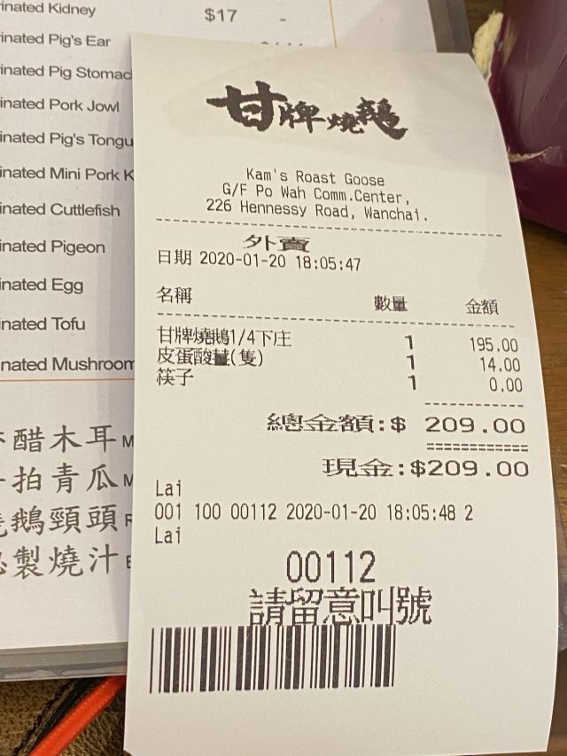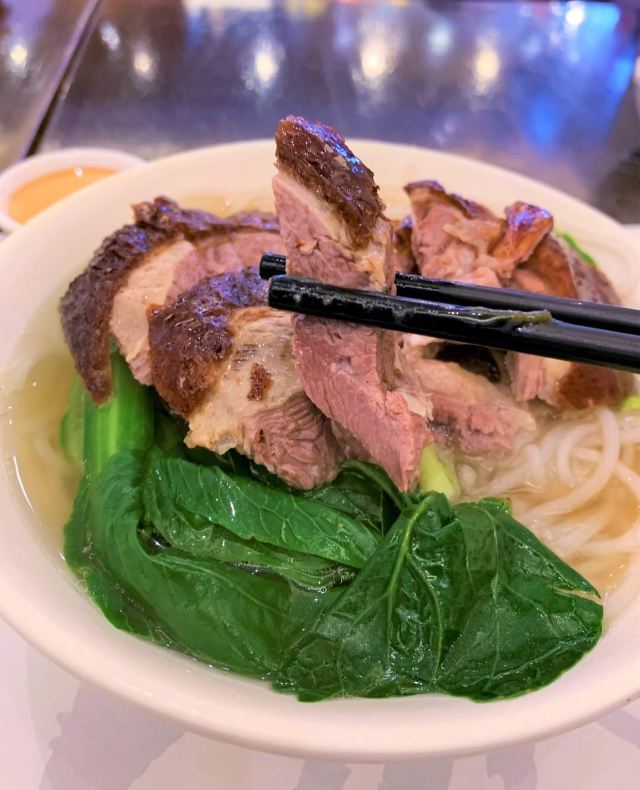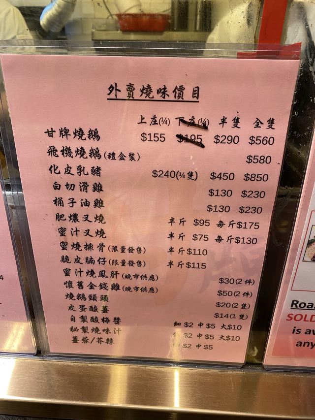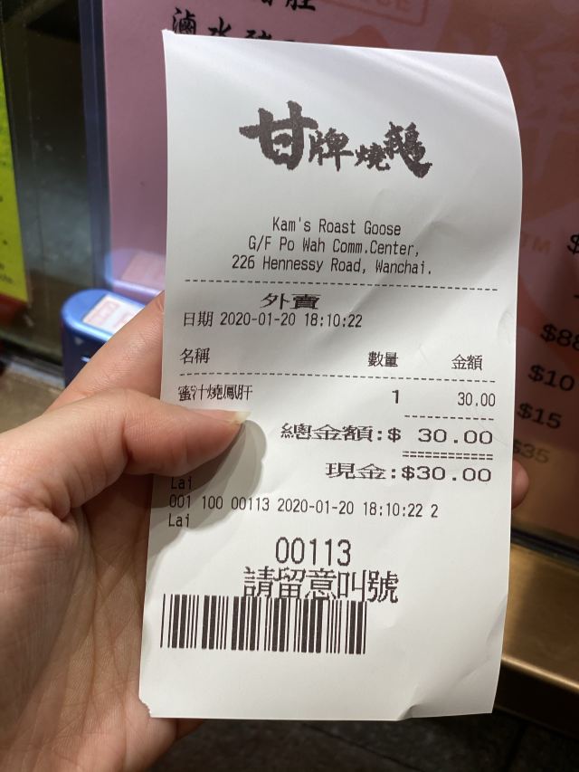 Kam’s Roast Goose听说这家烧鹅非常棒,还是米其林推荐餐厅,一开始觉得可能是炒作,想来也来了就试试看吧,我中午11点就到了,已经排起了长队,要11:30才开始入店,入店后点了烧鹅饭+鸳鸯奶茶+叉烧,这个味道是真的好,烧鹅有点肥的非常好吃入味,个人认为比陈光记的更有特色,当然陈光记的也非常好吃,叉烧真的是被惊艳到了,大块大块的,咬下去有汁水会溢出,大赞大赞啊!这个排队绝对是值了!
