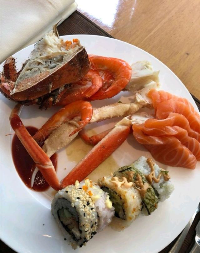 烤舒芙蕾,大头虾,烧牛肉,冷盘,熏三文鱼,鸡亦,小笼包,水果薄饼,公仔面,虾饺,西式小点心,buffet,天婦羅,海鲜,波士顿龙虾,面包蟹,蒜蓉粉丝蒸扇贝,寿司,迷你汉堡,帝王蟹脚