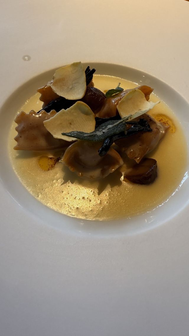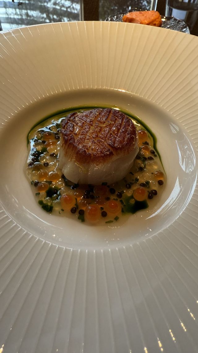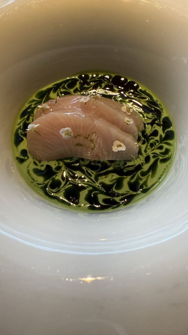 推荐海鲂鱼,味道由柑橘汁,青口,杏仁奶泡沫 构成。还有新西兰羊香草脆、白甘笋、黑蒜、西班牙鳀鱼。主菜都非常赏心悦目、味道都好好、羊肉嫩滑而不膻、真心一流。