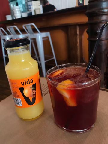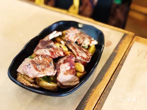 慕名而来,也是塞维利亚最后一天的午餐。 中午来的时候餐厅已经坐得满满当当了。 餐前面包 面包上桌有满满一桶,干巴巴的,但是配一同送上来的咸橄榄还可以吃吃。 牛排是真的老,后面已经完全放弃了西葡中档餐厅的牛排了,都一样那么老。 这边的鱿鱼墨鱼做得都很美味,几乎没有吃到难吃的,这家的也很赞。小鱿鱼特别嫩,QQ弹弹。 猪肉色拉 暂且这样叫吧,时隔太久,已经不记得当时吃得具体是什么了。就记得味道还不错哒。 Sangria 这家的更接近饮料 清爽清淡。 这边是季节菜单,所以可能现在已经变成新菜单咯。