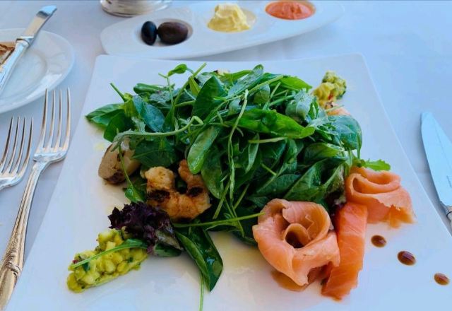 松露海鲈鱼,烤茄子,希腊沙拉,酸橘汁腌鱼,烤红鲷鱼,烤牛里脊,炸羊排,蘑菇烩肉