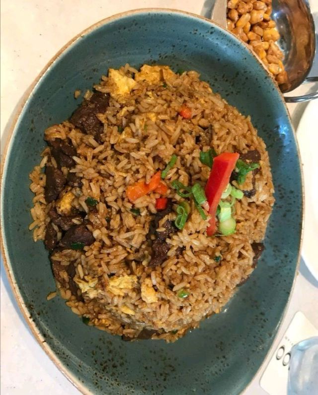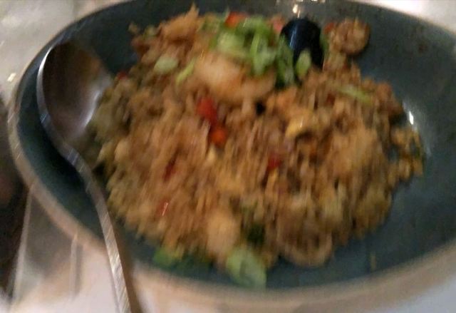 这家店炒饭的品种很多哦,点了几种不同的炒饭都不错,类似于澳门炒饭,就是有点点干,肉丁给的挺多的,炸牛肉的味道不错,油不多。