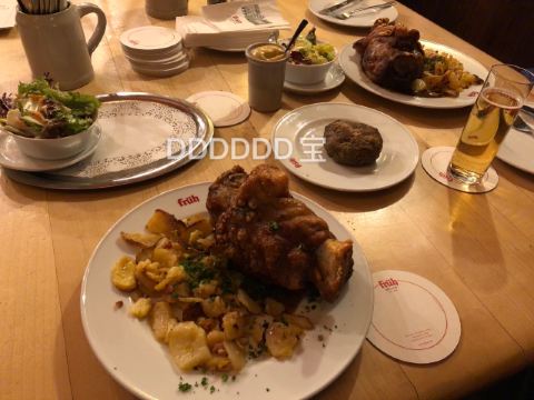 DDDDDD宝❣️一言不合油门一踩就从荷兰来到德国科隆,没想到时隔五个月又一次德国游,补上了之前没去到的科隆。不为大教堂不为爱情桥,只为了德国猪肘[捂脸] 位置:位于科隆市中心哦,边上就是科隆大教堂,地理位置很好,蛮好找的。店面非常大,很明显。 「猪肘子」14.5欧元,这家的猪肘比德国日常的猪肘个头小三分之一,不过一个人依旧干不完一盆,吃起来还是很撑的,肉肉很多!外皮烤的非常脆!热的时候咔嚓咔喳的,还能吃到满满的胶原蛋白。里面的肉肉很嫩,很香,全是瘦肉,一点肥肉都没!超级好吃!配的是土豆片,烤过的,有点太咸了。配着猪肘里面的肉吃倒是正好。色拉清爽解腻 「肉丸」3.5欧元,这个不怎么好吃,home made,都是瘦肉,很精,不过没什么味道… 「科隆啤酒」他家招牌,啤酒貌似就这一种,但是这和size一点都不像德国风格啊,0.2L,小小一杯,1.9欧的价格,就是德国正宗的黑啤味道~尝过就好。 [薄荷]环境:餐厅很大,有种进到古堡的感觉,一看就是很有历史感的房屋~分为好几个区域,当天有一半的区域没开。从带座到点单到收盘子到付费都是同一个店员哦~别人即使你叫他他也不怎么会搭理你,主要因为最后给小费的问题~ ♂️服务:店员态度还算ok的,时不时会来问一问~ 去的那天科隆大风暴,风大到真的把我吹着跑…周围的商铺科隆大教堂之类的都关闭了,这话倒是意外的没有关闭~不过相比平时应该人少了很多。