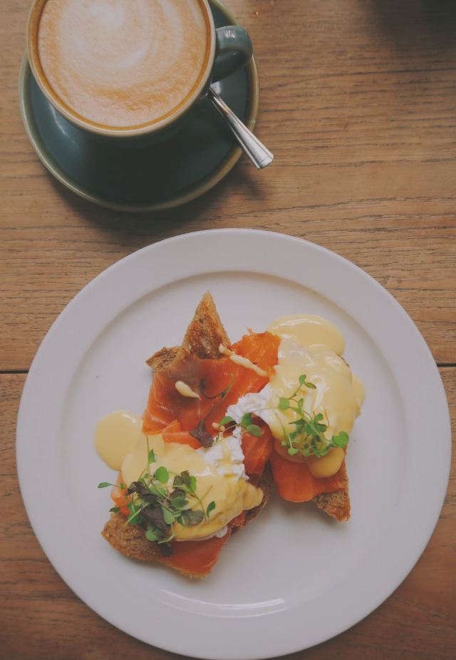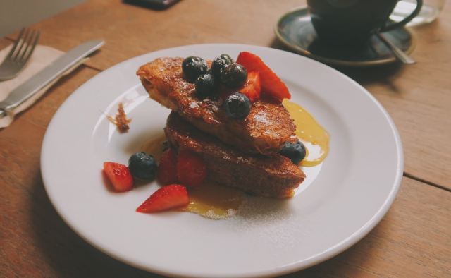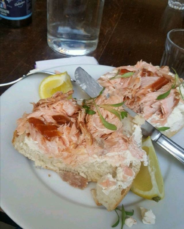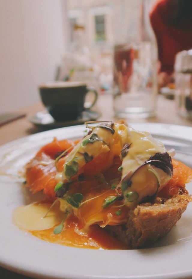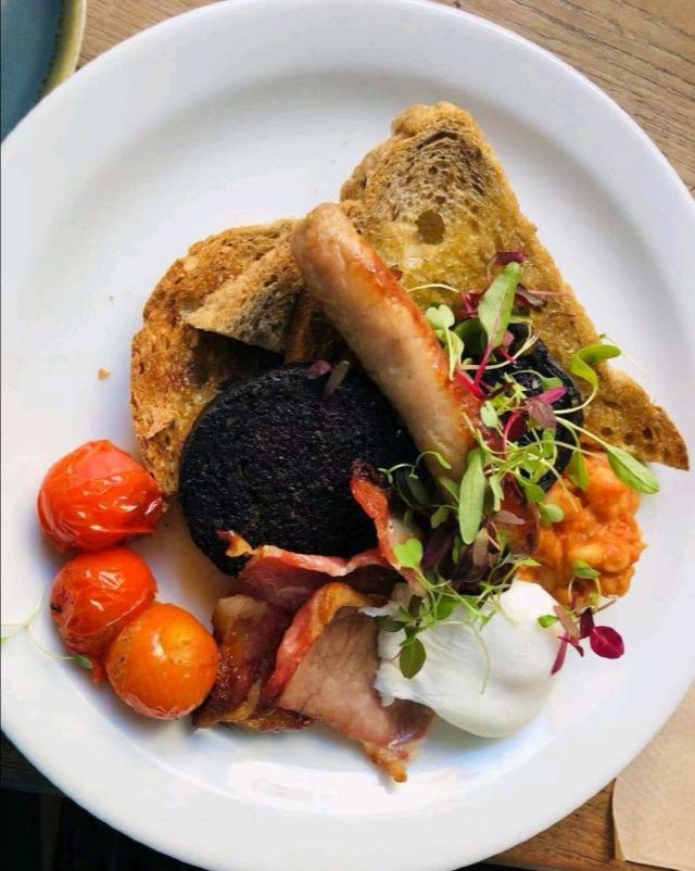 爱丁堡食物储藏室。店名莫名戳中了我这里的食材来自苏格兰各地 比如芝士就产自苏格兰高地。早餐供应至11:45 然后换成brunch菜单。这次赶了个早 试了他家的早餐菜式。 Full breakfast Royal egg benedict Brioche toast w/ berries 前两道都中规中矩。咖啡也比较一般普通 就连拉花都是写意派 去过了英国好几家出色的咖啡店 再来对比这些同款菜 嘴刁的我甚至会有些失望。给第一次尝试的爸妈倒也说得过去。最令人惊喜的还属蛋液煎黄油吐司 靠这一道搬回了一局。吐司表面煎的略微酥脆 里面依然保持蓬松~