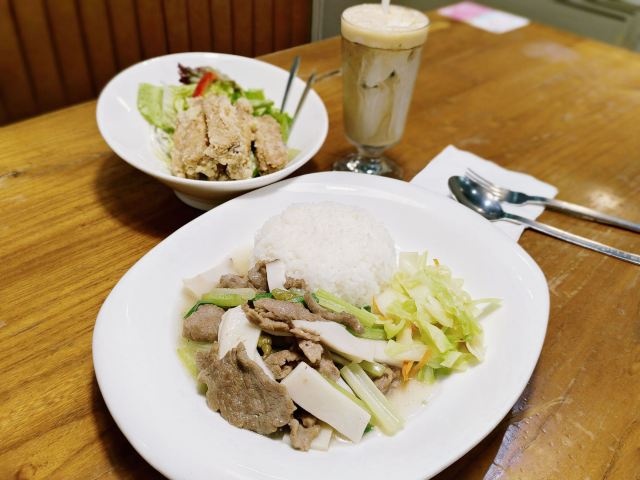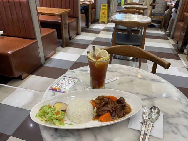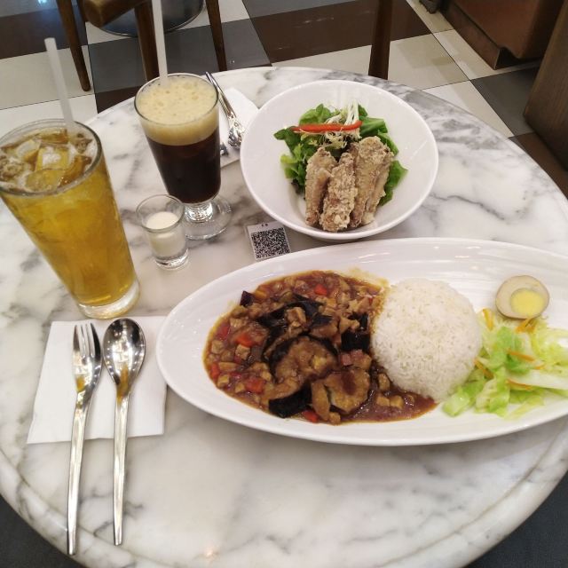 茶樹菇牛肉飯,波霸珍珠熱奶茶,咖啡,薯條豬排包,鹵肉米粉,香辣牛肉飯,單骨雞翼,話梅柑桔蜜,滑蛋炒鸡,厚蛋火腿三文治
