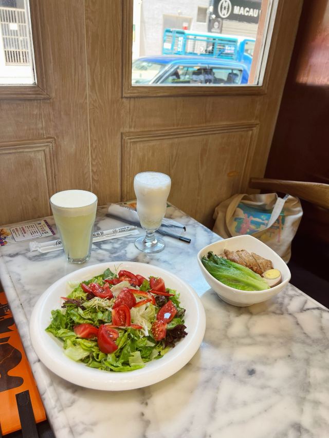 逛完热闹区官也街 来逛逛氹仔住宅区 感受一下澳门人的生活 来尝尝台式店-小泉居威翠店 大拌菜沙拉-炎炎的天气,没什么口欲,所以点了个沙拉,配上这个酸酸甜甜的醋汁,真是无敌适合这天气。 椰果奶绿-这里的椰果很好吃,很有口感,如果茶味再重一点就好了,可能我喜欢茶味多一点。 这座位也蛮好坐喔 总比官也街人挤人~