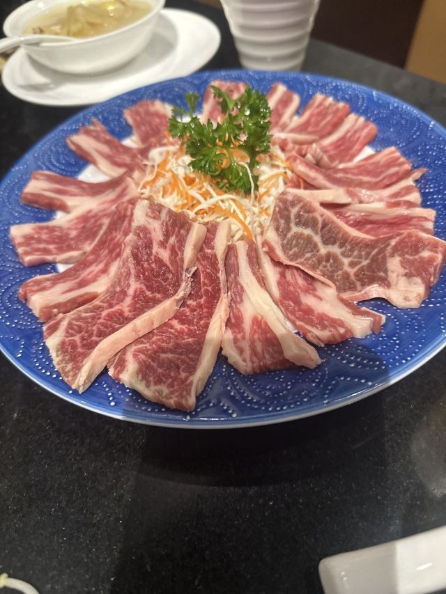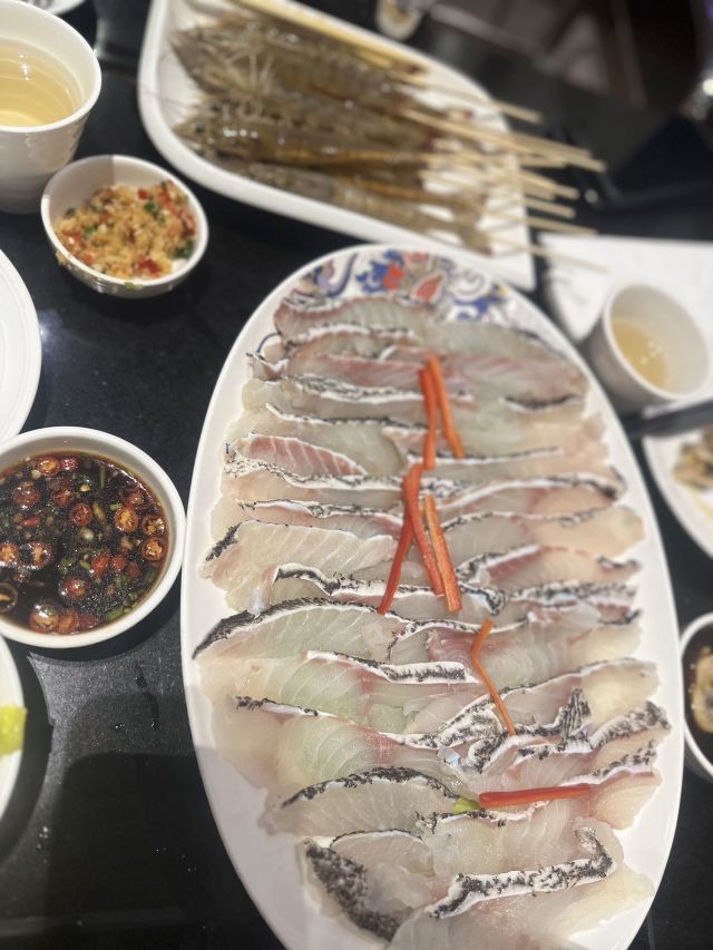 香煎鹅肝,鸡软骨丸,凉拌三文鱼皮,三文鱼厚切,玉米烙,鸡煲翅,煎牛肉,剌身拼盘,牛肉粒,鸡煲翅火锅,上汤豌豆苗