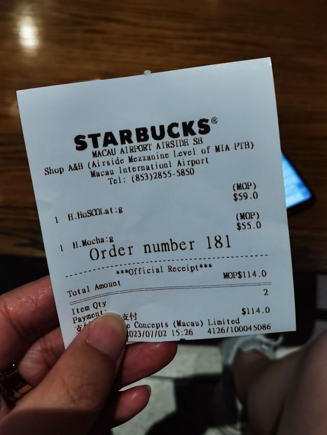 离开澳门前,以一杯星巴克咖啡作为ending~ 澳门机场不大,选择的餐厅更少,所以…… 【环境】 地方不是很大,挺整洁的~ 【服务】 工作人员制作咖啡挺迅速的,但叫顾客取餐很慢~ 【口味】 |热巧克力^味道浓郁~
