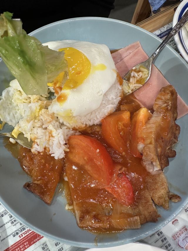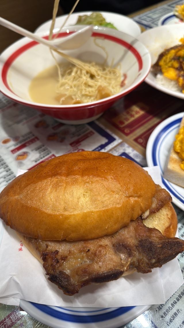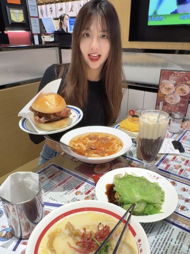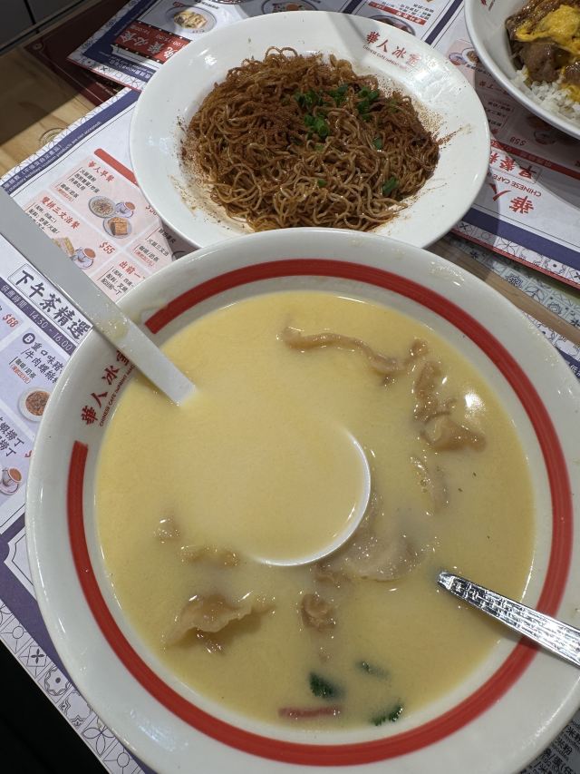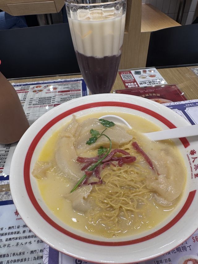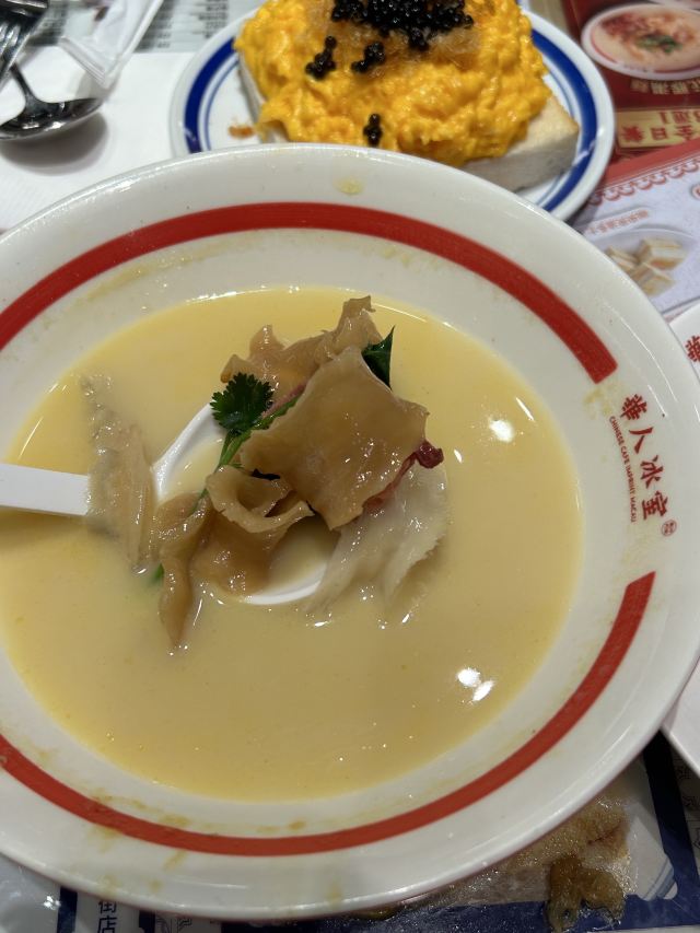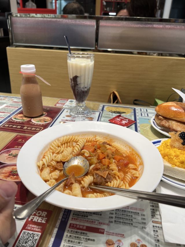 华人樽仔奶茶,黑松露炒蛋多士,滑牛饭,微辣沙一丁,鱼子酱马介休炒蛋多士 ,澳门猪扒包,鱼翅花胶汤面
