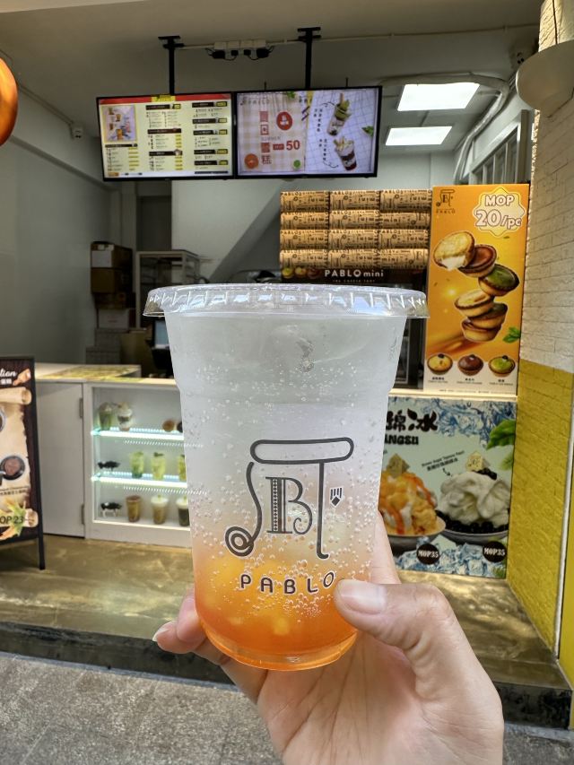 旅游度假去澳门旅游,来到大三巴牌坊打卡,路过这一家店铺,看到有不少游客买了他们的芝士挞,有很多不同口味的,例如:抹茶味、经典口味、珍珠芝士挞等等,因为不饿,所以没有买吃的,就买了一杯饮品,价格有点小贵,但是的确要比在广州的好喝,而且店员(也许是老板)是两位年轻的小伙子,都是说英语的,很耐心地听了我对饮品的要求,非常好喝。