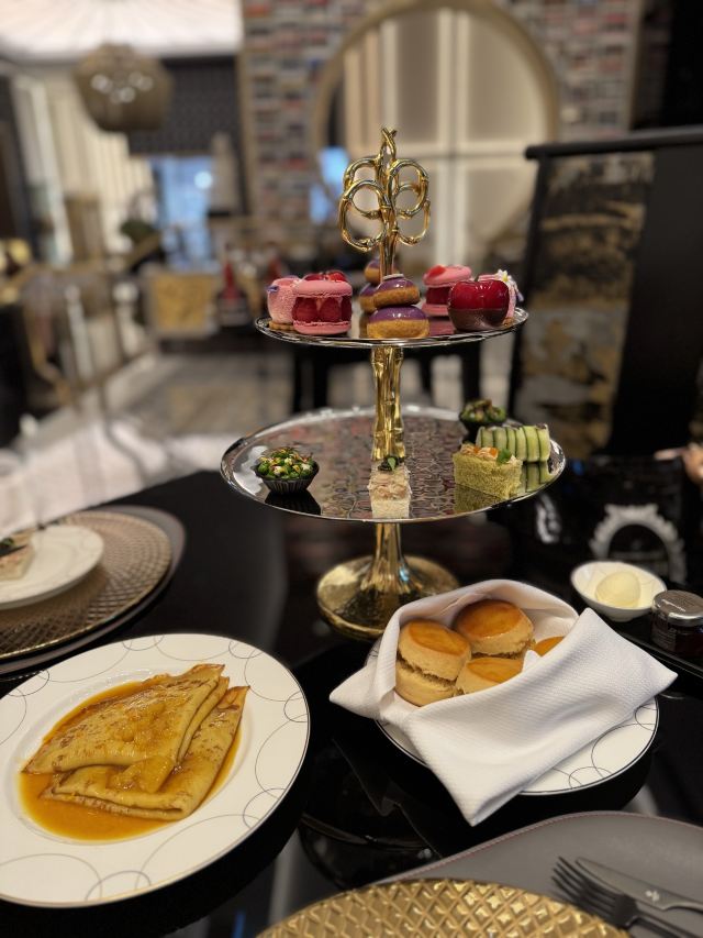 Michelle JJM怀念Karl高贵时尚品味,放满Karl的时装设计书为主题的博覧廊,环境,食物饮品质数高,服务员细心周到,价钱在Trip.com最平,还有手部护理送,绝对是放假享受生活最高享受的下午茶. 博览廊每个角落都是打咭位,不用去法国都能在博覧廊品尝到正宗法国甜品,相信只有岀生法国生活在法国才能领悟及做出最好最正宗的法国甜品,马卡龙和闪电泡芙都是我最爱,❤️Ispahan-粉红色马卡龙夹住中间的玫红忌亷,带著清香的荔枝味和Raspberry 小小酸味;另有厨师即场煮橙酒pancakes ,透过火焰散发橙酒香味也是表演一样,拍片打咭位又来了;Cappuccino 朱古力上印有Karl 头像;威士忌咖啡Black diamond 味道难忘;再加上驻场的钢琴师演奏流行曲令人放松心情,陶醉其中。