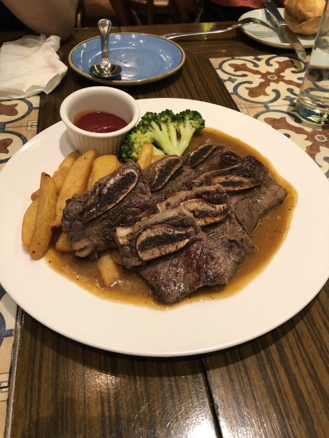 福龙葡国餐,很火,在大三巴附近的小巷里,店面不大,氛围很好。鸭饭,每桌必点,外面像锅巴一样,里面是鸭肉和香肠,料很足!葡国炒蜆,很鲜,没有沙。服务也很好!