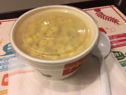 来机场接朋友,到早了没地方去,只能来金拱门… 人山人海,都是棒子!一座难求啊! 大晚上的为了清淡点,点了个粟米粒,mop20,价格也是辣手机场没办法呀! 话说上次到达没觉得,这次觉得澳门机场破得来…停机坪在来的大巴上就看到了