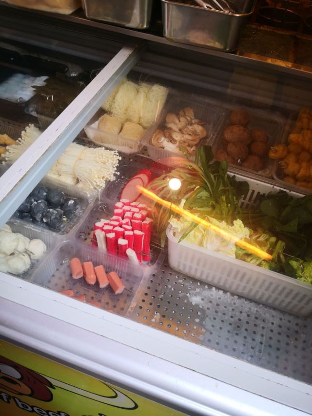 响铃卷,牛杂,牛肚,牛大肠,萝卜,牛筋丸,牛腩,肥肠,腐皮,鱼豆付丸子,面筋球球,墨子丸,蛋挞,杂菜捞,芥末沙律丸,竹升面