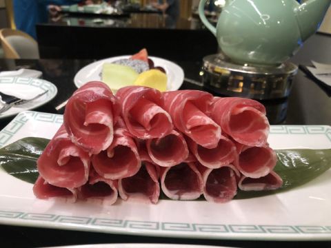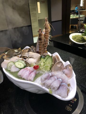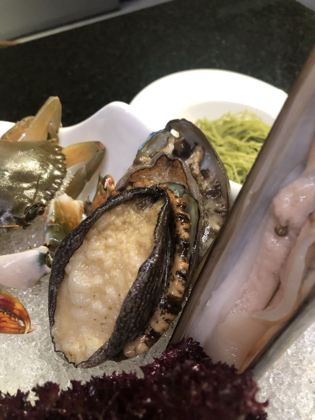 美高梅去过几次,玻璃顶的大厅宽敞明亮。这里的餐厅还真没怎么吃过。晚餐解锁了这家火锅。这家店有炒菜和火锅,环境简约大气。通风可以,不会吃完火锅一身味道。海鲜都很新鲜,鲍鱼、蛏子、虾,都是活的,下锅还真有些不忍心,呜呜。不沾料能吃出食材的甜鲜味的。牛羊肉的肉质也好,别涮时间太长,入口鲜嫩即化。这一大盘水灵灵的蔬菜没吃几口,走时觉得剩下浪费可惜,本来想打包的,服务员说餐厅规定因为食品安全考虑没熟的食物不让带走。之前有的日餐厅考虑到鱼生类的食物怕时间过长吃了不健康,没有外卖业务。但这家店的规定也是奇怪,自己点的蔬菜怎么还不能带走呢。不过,鉴于跟帅哥吃饭心情不错,就不跟他们计较这小事儿了。毕竟帅哥面前要注意保持优雅姿态!哈哈。