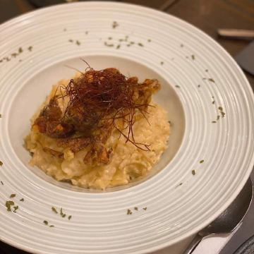 左口鱼边牛油果有点普通,就是一堆切碎了的菜不要点吧。安格斯牛柳配的黑松露酱 黑松露酱要赞一赞 如果黑松露味道更浓郁更好。蟹膏炖饭配软壳蟹有淡淡海鲜味但蟹膏味不浓,软壳蟹松脆 很好味。酥炸生蚝海鲜生蚝为他加分不少 酥脆有鲜味必点。