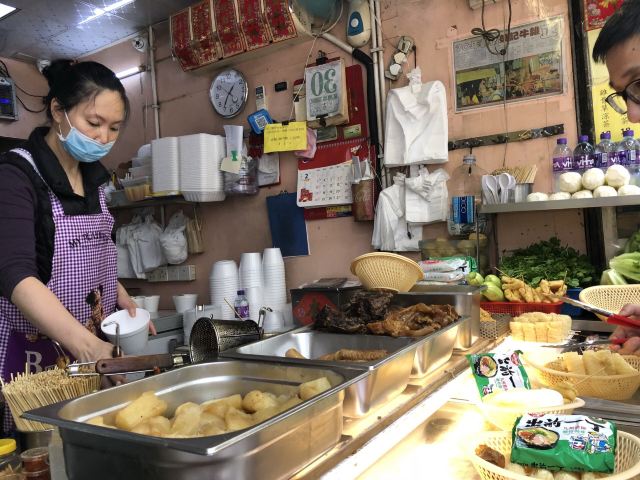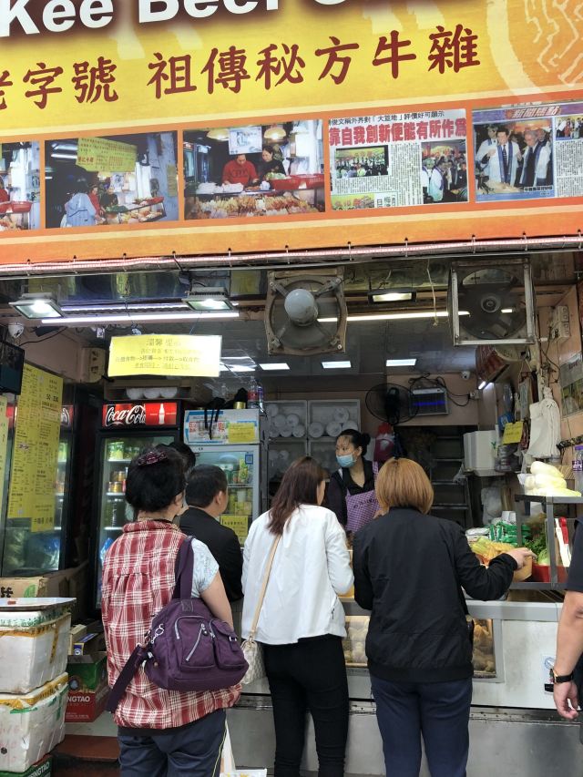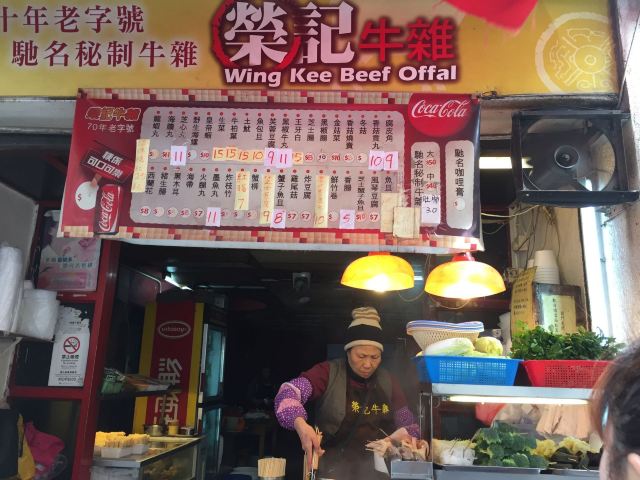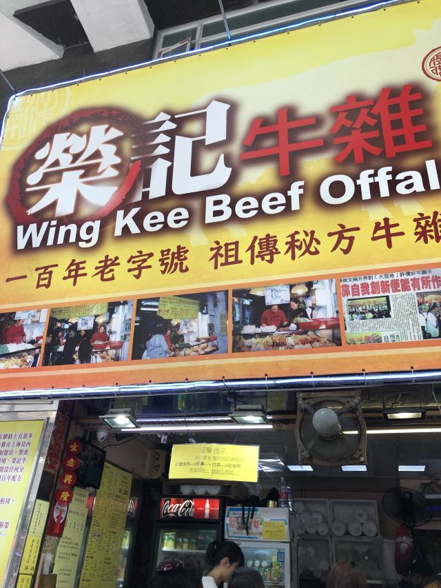 Wing Kee Beef Offal据说这是澳门吃牛杂很有名的一家店,正好就在我们这次住的酒店边上,于是就打算去尝一下。来到店铺门口,一开始是被惊讶到的。说是牛杂店,其实就是一个小店面,老板直接在店铺门口现烧,整个店都没有客人坐的位置,如果在这里买了吃的,又不准备打包带走的话,那就只能站在店门口吃了,店门口有一张很小很小的小桌子,让客人放食物,大概可以站三个人左右。可是就是这么小一家店,生意倒是很好,门口的客人一直没有停过,一波接着一波,老板忙着做,也是忙到停不下来。 这里的牛杂味道确实不错,我家小朋友吃了不少。虽然味道可以,但这里的价格也是有点贵的,牛杂要卖100元一份,如果一个人来吃,点一份牛杂加一些蔬菜什么的,就要100多元了。我们三个人点单的时候没有注意到原来食物的量是那么大的,结果一不小心点多了,最后吃不完,关键是价格还有点夸张,站在路边吃的路边摊花了我们四百多澳元,实在有点小心疼。 旅行小贴士:如果你来这里吃的话,千万不要因为都想尝一下,就点太多的东西,这样不仅浪费食物也浪费了钱。