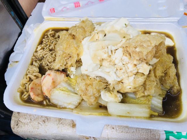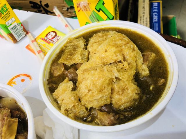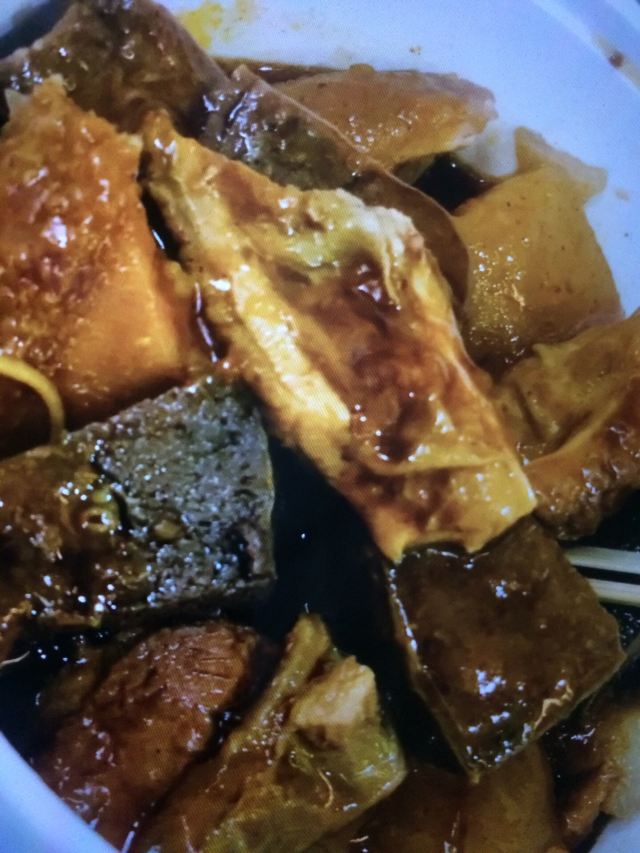 阿悠麻麻据说这是澳门吃牛杂很有名的一家店,正好就在我们这次住的酒店边上,于是就打算去尝一下。来到店铺门口,一开始是被惊讶到的。说是牛杂店,其实就是一个小店面,老板直接在店铺门口现烧,整个店都没有客人坐的位置,如果在这里买了吃的,又不准备打包带走的话,那就只能站在店门口吃了,店门口有一张很小很小的小桌子,让客人放食物,大概可以站三个人左右。可是就是这么小一家店,生意倒是很好,门口的客人一直没有停过,一波接着一波,老板忙着做,也是忙到停不下来。 这里的牛杂味道确实不错,我家小朋友吃了不少。虽然味道可以,但这里的价格也是有点贵的,牛杂要卖100元一份,如果一个人来吃,点一份牛杂加一些蔬菜什么的,就要100多元了。我们三个人点单的时候没有注意到原来食物的量是那么大的,结果一不小心点多了,最后吃不完,关键是价格还有点夸张,站在路边吃的路边摊花了我们四百多澳元,实在有点小心疼。 旅行小贴士:如果你来这里吃的话,千万不要因为都想尝一下,就点太多的东西,这样不仅浪费食物也浪费了钱。