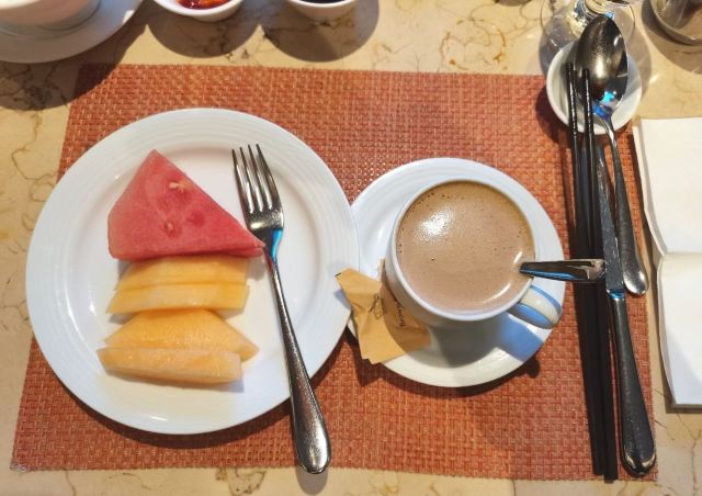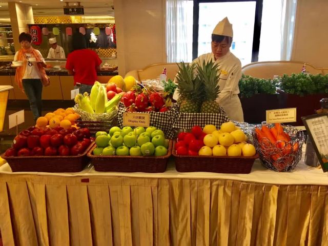 入住酒店会送餐券,可以在9楼用,自助餐味道不错,种类不太多,每人有一杯饮品,服务还可以,买单略慢