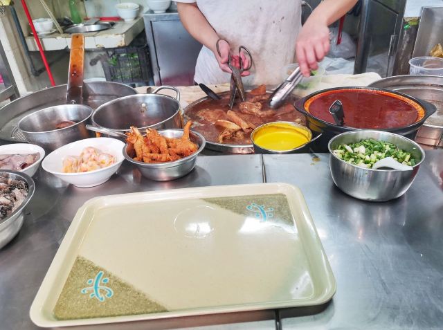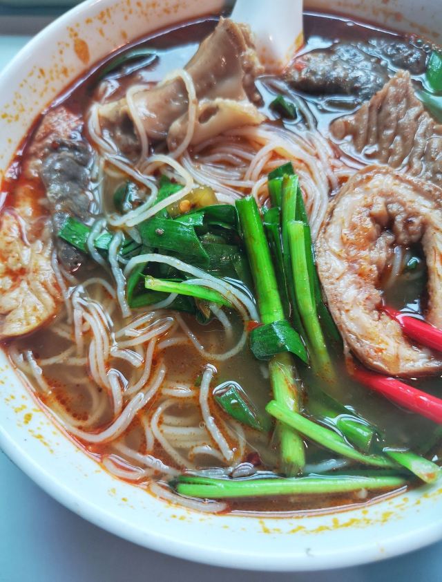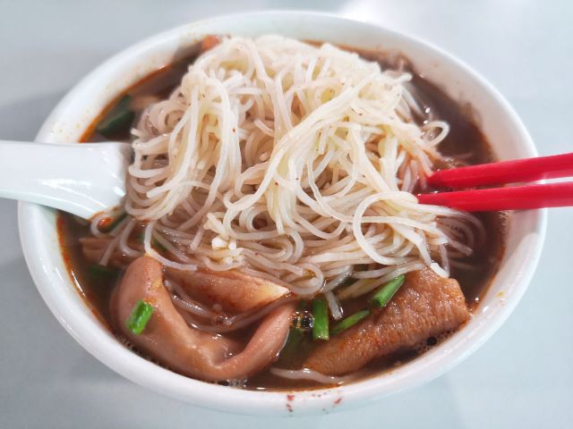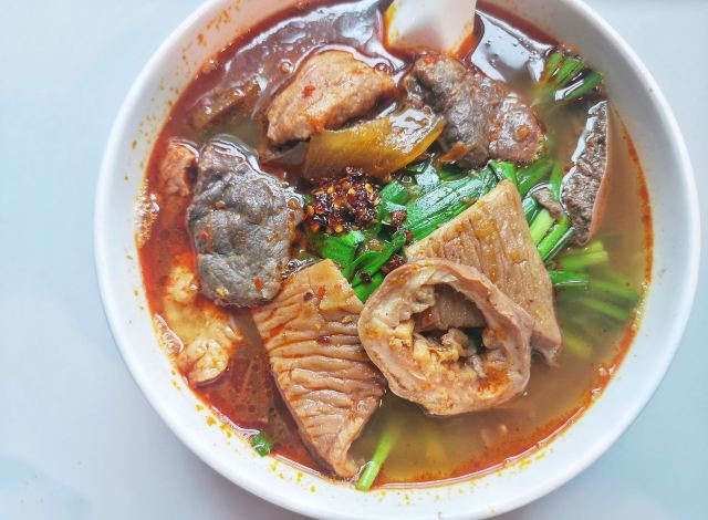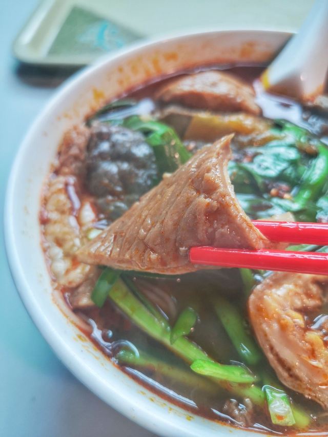 營地街市熟食攤檔也太好吃了吧 有一段時間沒去了 趁著最近人少來吃了米其林推薦的地道小吃的【梓記牛雜】它跟普通的咖喱牛雜不太一樣 主打的不是咖喱 而是牛雜湯底 點了一碗經典的牛雜湯米粉 牛雜真的配的很全 每樣都有兩件 而且它家自家製的辣椒醬真的太好吃了 完全意料之外的好吃 湯底簡直絕了 直接把湯都喝光的程度 一份才30塊 想買辣椒醬的話是40塊一瓶 真正經典的美味並不是用價錢衡量的 吃了一碗還要再打包一份 可惜營業時間只從早上10點開到下午5點