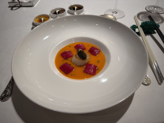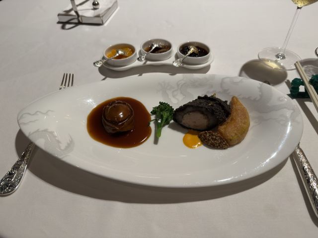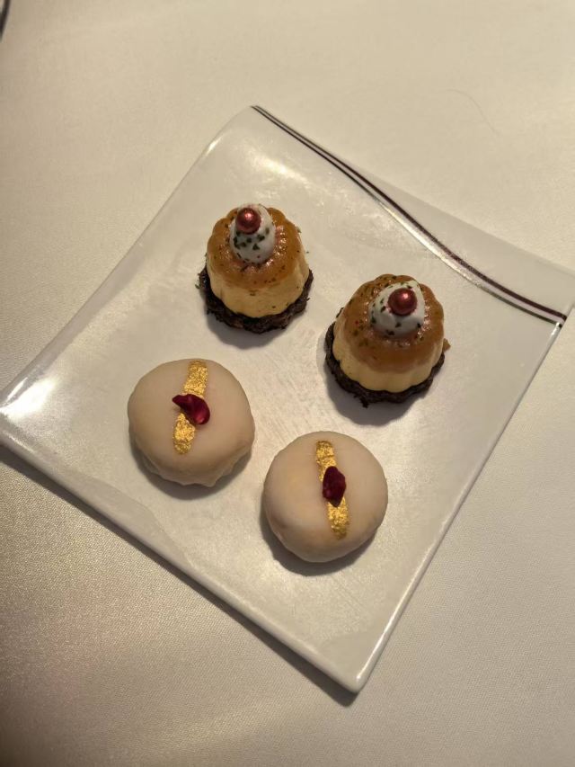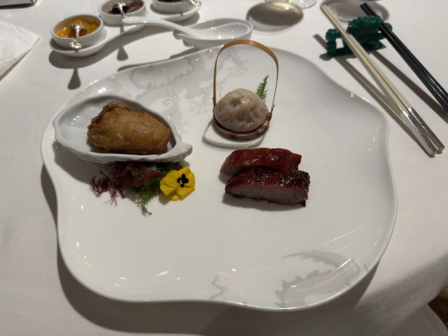 Ann Hsu澳门新濠天地-米其林三星“誉珑轩” 饮茶价格没有预想的贵❗️❗️ 点了他的特色茶-茶资约80.90/人 点了他的招牌⭐️⭐️“翡翠玉龙饺”48/件,真的像翡翠一样,外皮好像是菠菜汁调的+内馅蓝龙虾,算是近期吃到最好吃的虾饺。 “松露蟹粉果”48/件,个人觉得这道味道普通,可以一起尝鲜看看就好,就是清淡配上松露的味道😅 ⭐️“菜汁鲍鱼烧卖”58/件,一样是菠菜做的外皮上面放了一颗原汁鲍鱼,这鲍鱼很有嚼劲也让味道鲜上加鲜,是一道美味的料理。 ⭐️⭐️“一口和牛酥”48/件,外面的酥皮不油千层也做的很精致,配上内馅黑椒牛柳,可以感受到点心的功力深厚👍🏻👍🏻👍🏻。 ⭐️⭐️“黑豚叉烧酥”108/3件,这个酥皮无敌好吃,入口即化不油又干爽的脆感,吃的时候会联想到惠灵顿牛排的酥皮,但个人觉得这道中式酥皮做得比较厉害🤣 ⭐️⭐️ “三色布拉肠粉”(白米肠+石斑鱼片+脆皮鲜虾卷+梅菜黑豚叉烧)128 这道必点,有够好吃! 鱼片里面有包脆脆的青菜,可以感受到鱼的鲜甜。 鲜虾卷也是包了完整的新鲜虾子 叉烧口味是三个里面最重的,放在第三个吃刚刚好,想到这道料理都会流口水🤤🤤🤤 ⭐️⭐️“黑松露烧鸡餐包”108/3件,完全不会让你失望!这道也是必点之一,外层类似酥皮泡芙的感觉,咬开松露味相当浓烈,配上内馅烧鸡,会有满满的愉悦感。 从午饭饮茶吃到下午茶,因为最后还招待了一道甜点,满满喔饱足感,这餐吃下来不会只有钱的味道,真的很值得来吃😘😘😘 两个人午餐消费MOP 781 约台币NT.3000左右,以米其林三星来讲,CP值非常的高,吃完立刻推荐身旁要去澳门的朋友都该去试试看🤤🤤🤤 服务是不错,不过服务员语气中会稍微有点让人感觉好像你不是要点大菜,只是要吃点心,稍有一点点不耐烦的感觉.....希望是自己感觉错误,不过食物真的很好吃,值得再访。 提醒⚠️ 餐厅只接受45天内的预定,要订位的朋友可以用email与餐厅联系喔!