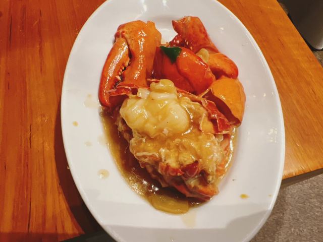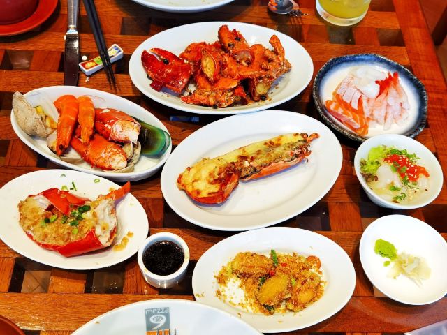 椒盐龙虾,蒜蓉蒸鲍鱼,清蒸波龙,虎斑鱼,葱姜炒蟹,椰子焦糖布丁,芝士焗龙虾,红莓派配雪糕,清蒸龙虾,油浸笋壳鱼,鱼唇上汤娃娃菜,避风塘炒波龙