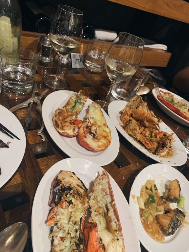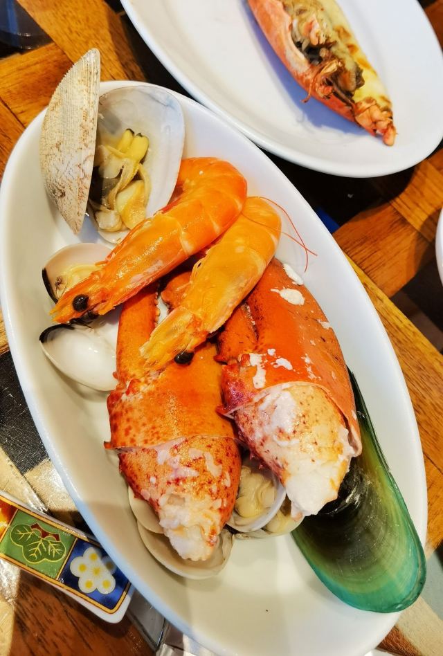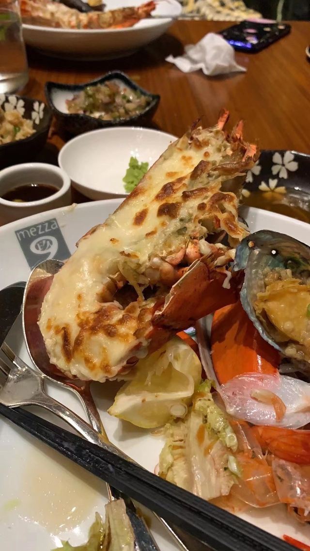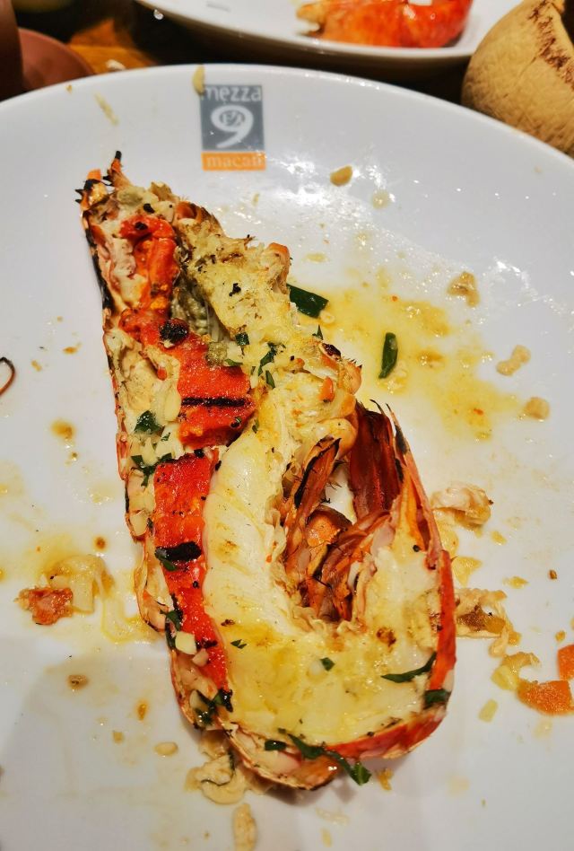 mezza9 Macaumezza9 macau,目前澳门最火的波龙自助,据说之前是澳龙,可惜没赶上好时候,不过波龙也很香了~ 龙虾有五种味道,现点现杀,炭烤,蒜蓉蒸,避风塘,芝士焗,姜葱炒都不错~隔壁桌点龙虾直接20只,我俩撑死了才8只,战斗力太辣鸡了,亏我俩长得像是能吃个几十只的样子……