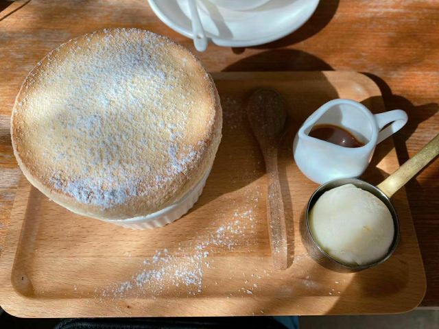 KAFKA Sweets & Gourmandises (Taipa)澳门旅行一定要吃的舒芙蕾!yyds!! 答应我,澳门旅行一定要来吃这家的舒芙蕾呀~绝绝子舒芙蕾,专程去也值得。 🍮澳门法式甜品老店,自开业起就是本地的网红餐厅了。下午茶时段人气超级旺,9成都是本地人。 🍬「梳乎厘」原味舒芙蕾太好吃了吧。蓬松柔软,好吧,我要说那句“入口即化”了…加上自家熬制的焦糖酱,甜、润、软、棉,太爱了。旁边的柠檬雪芭也可以搭配一起吃。 🍰「焦糖蜂巢戚风」虽然比起来戚风还是更爱舒芙蕾,但戚风也是好吃的。卡夫卡的焦糖都做的很好呀,戚风蛋糕里的焦糖脆和做装饰的焦糖蜂巢都很嗲。戚风柔软细腻,除了底略有点干,简直没有其他缺点。 🍵「抹茶冰歐蕾」抹茶冰块+热牛奶+糖浆,以造型取胜的饮品。 🧊夏天里在这样的美味甜品店里喝个下午茶,也是旅行中的小确幸呢。